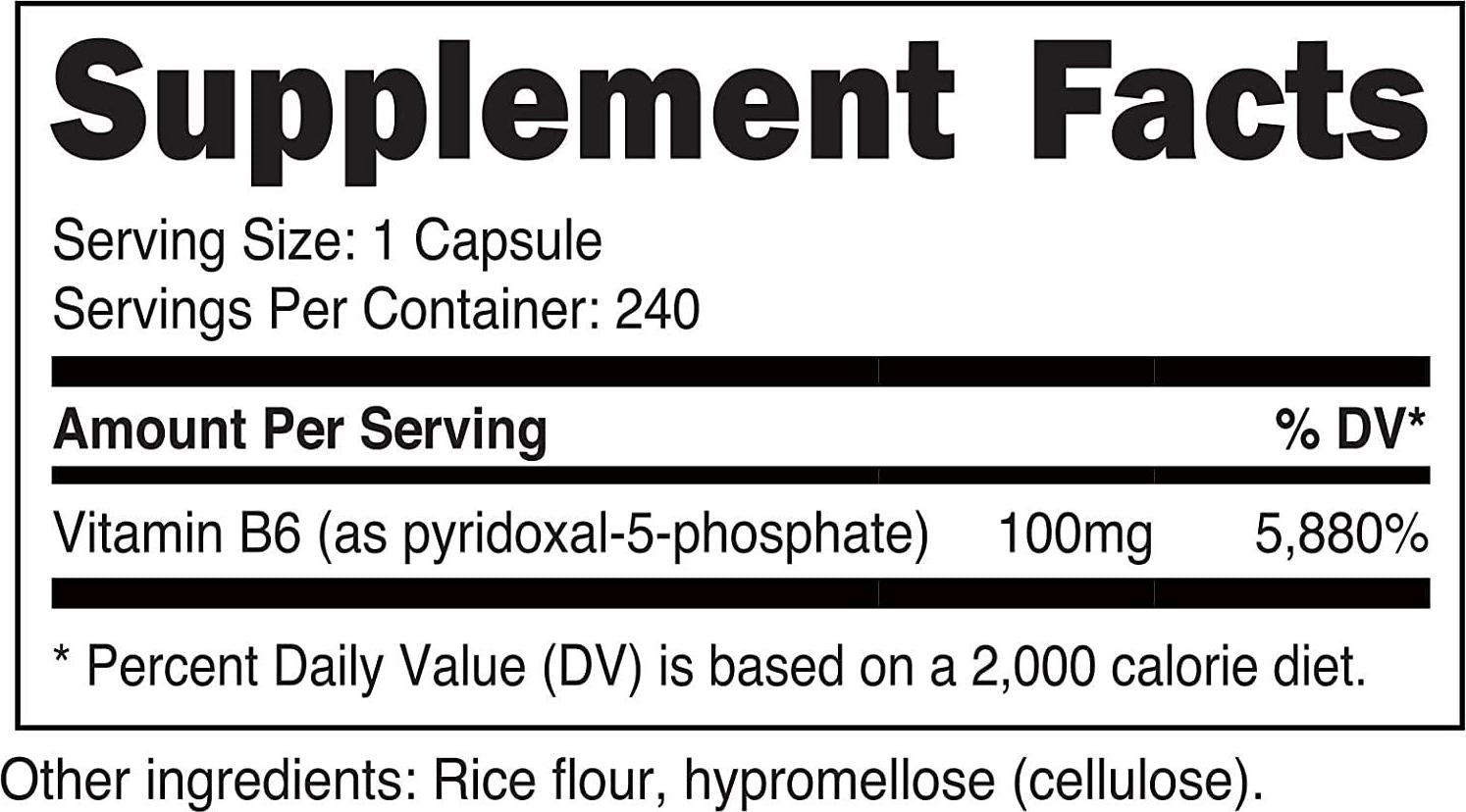 240 capsules, gluten free, non-gmo, p5p vitamin b6 supplement, vegetarian friendly