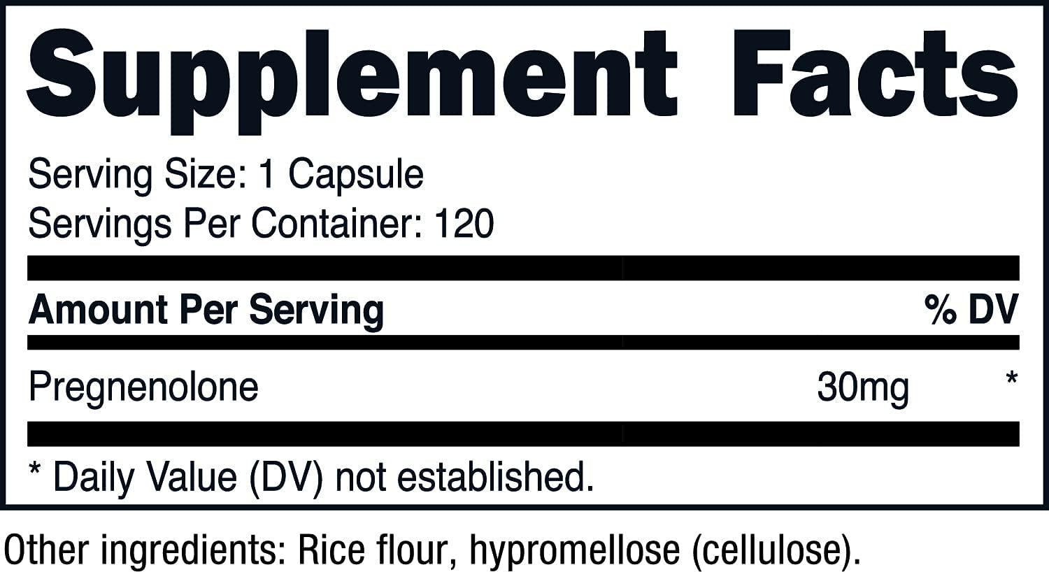 - 120 Capsules, 120 Servings of Pregnenolone Per Bottle