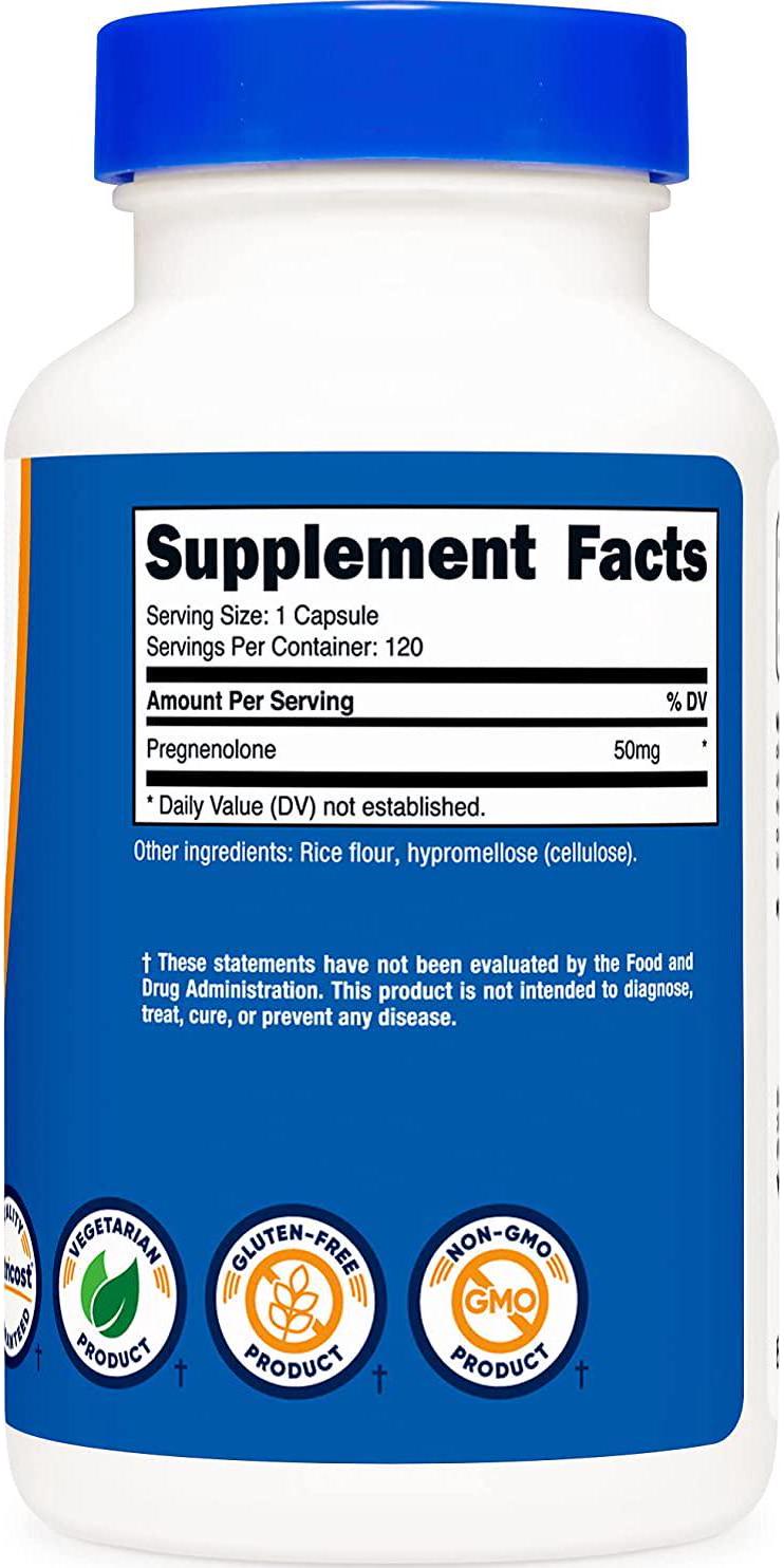 Nutricost Pregnenolone 50mg, 120 Capsules - Non-GMO, Gluten Free, Vegetarian Capsules