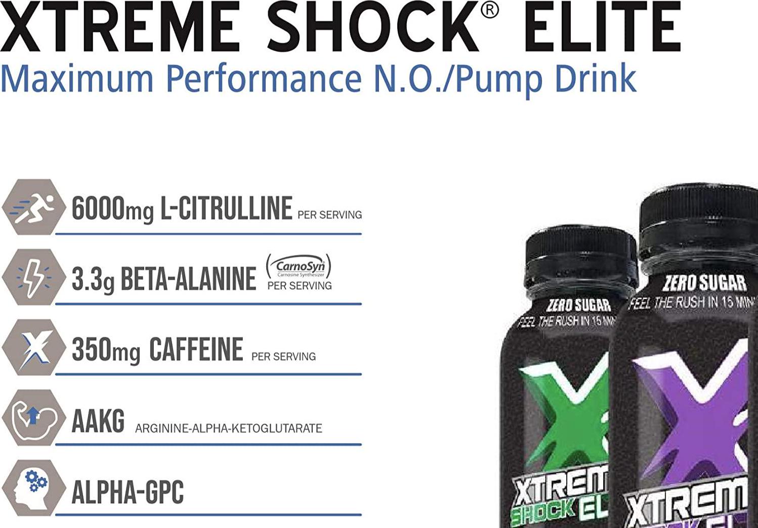 350mg caffeine, alpha gpc focus, nitric oxide formula, nrg xtreme shock elite energy drink, usa, watermelon, zero sugar