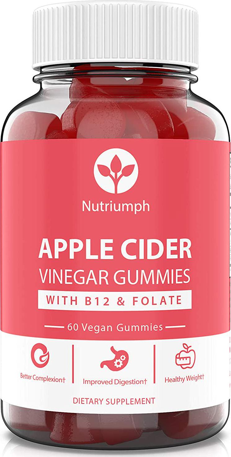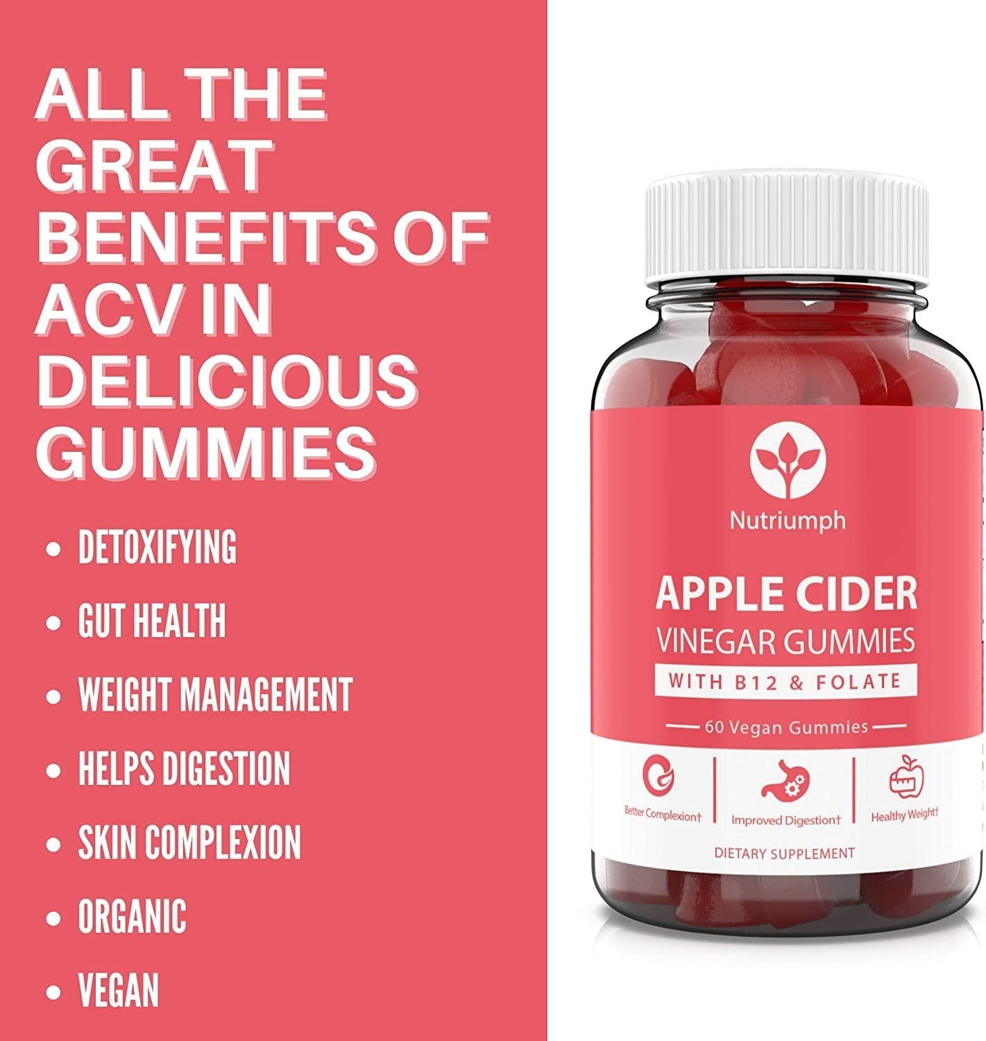 Nutriumph Apple Cider Vinegar Gummies with The Mother Vegan Weight Loss, Detox, Immune Support, Skin, Hair and Nails Men and Women with Vitamin B12 and Folate 60 ACV Gummy Vitamins