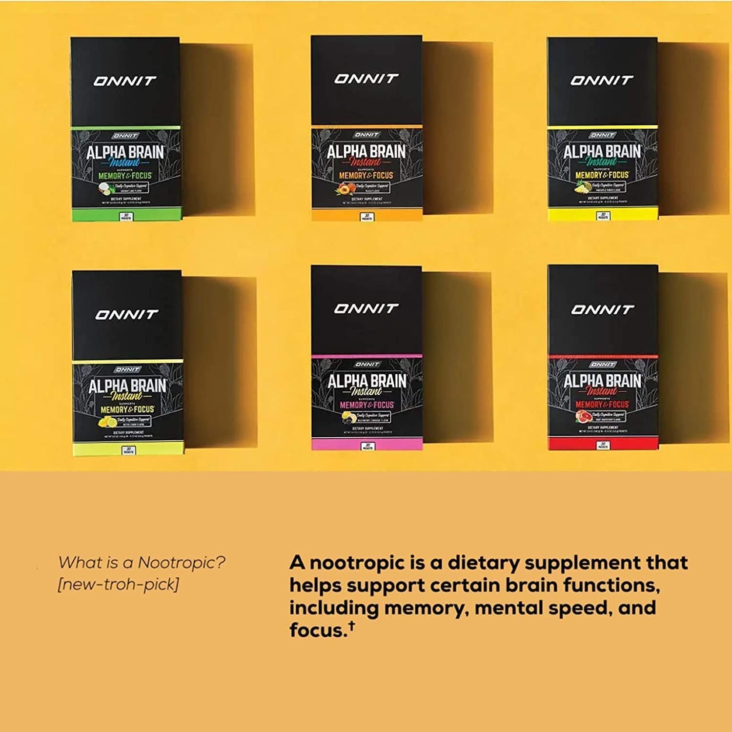 ONNIT Alpha Brain Instant - Coconut Lime Flavor - Nootropic Brain Booster Memory Supplement - Brain Support for Focus, Energy and Clarity - Alpha GPC Choline, Cats Claw, L-Theanine, Bacopa - 30ct