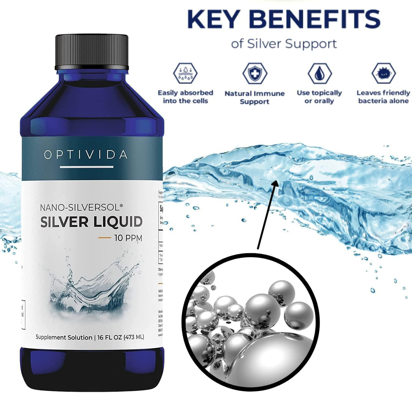 10ppm, immune support, nano silver liquid, natural, optivida, patented technology