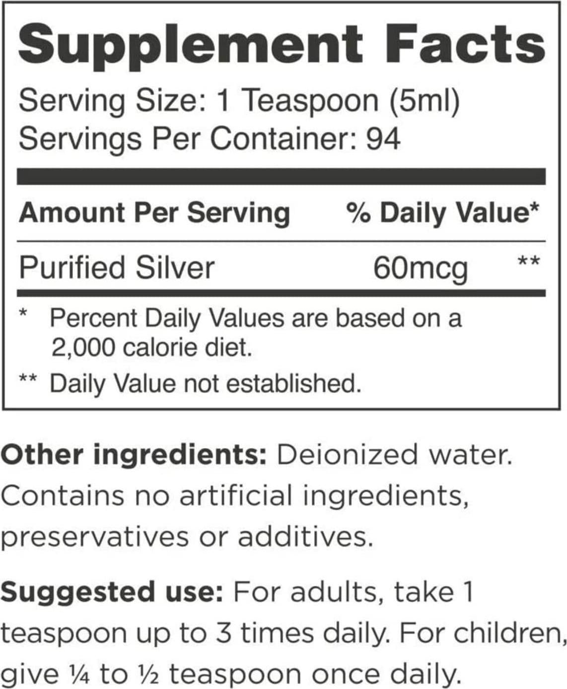 - OPTIVIDA SILVER- Silver Liquid Solution can be taken up to three times daily according to directions. Each 16-ounce bottle contains 96 adult servings.