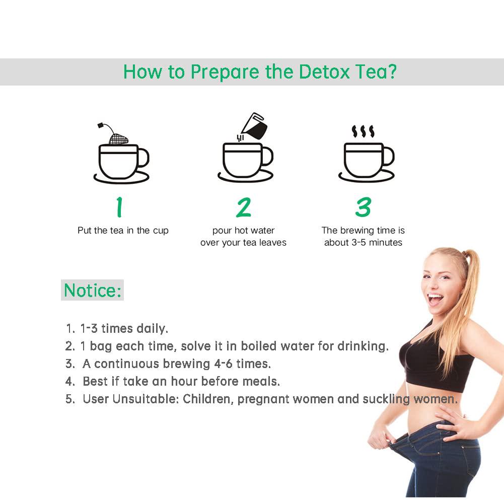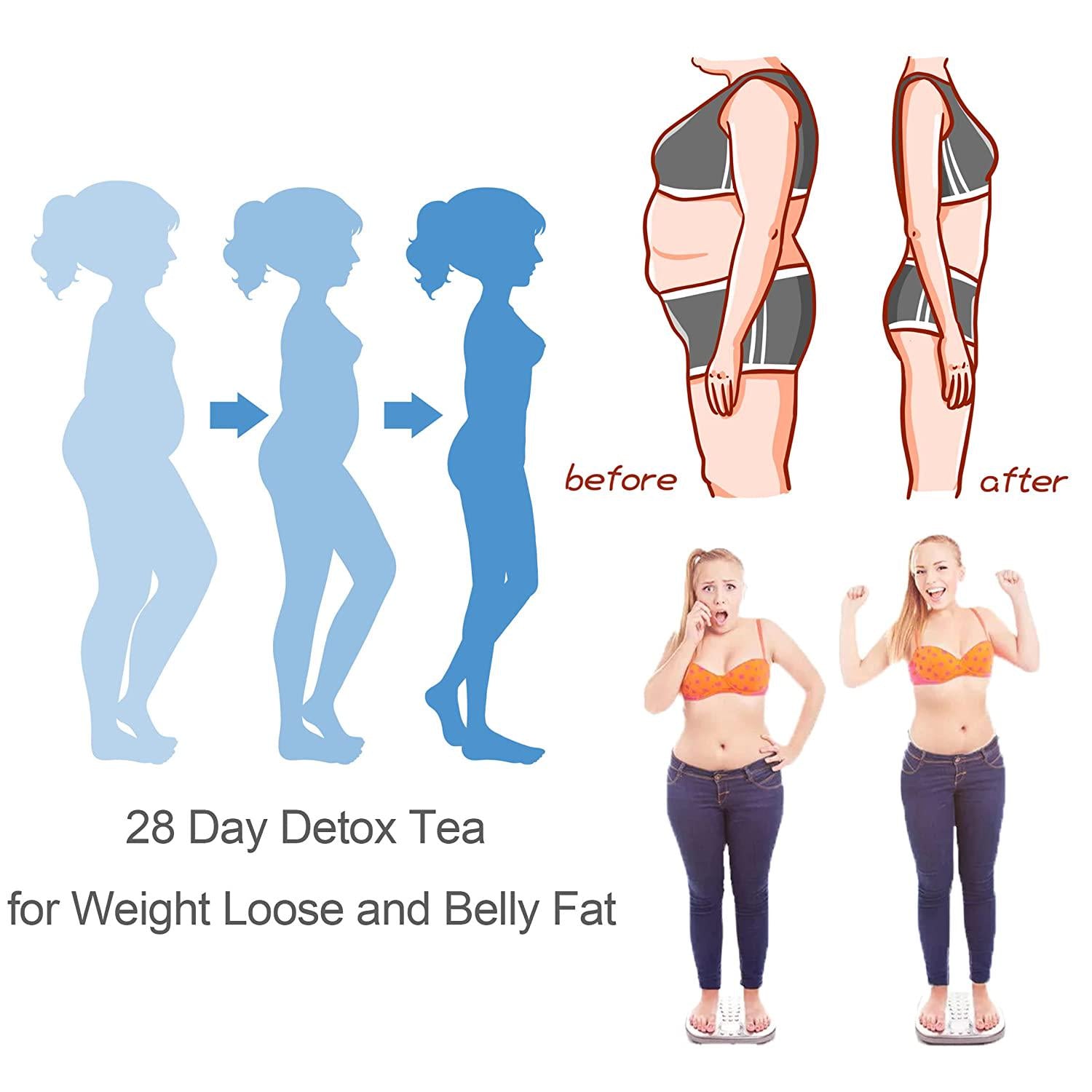 - 28 Days Slimming Tea Teatox : Efficiently single packets detox tea weight loss for bloating. No hurt to body, No side-effect, No rebound. Usage: two times a day for day and night to reduce weight. Put 1 bag in boiled water for drinking, a continuous brewing 4-6 times