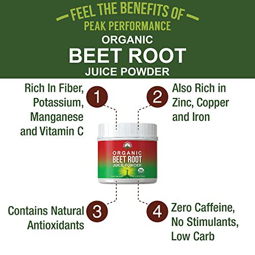 Organic Beet Root Powder - Ultra High Purity Super Food Beets Juice Powder. 100% Pure Organic Nitric Oxide Boosting Beetroot Supplement. Keto, Paleo, Vegan Organic Reds Superfood Rich in Polyphenols