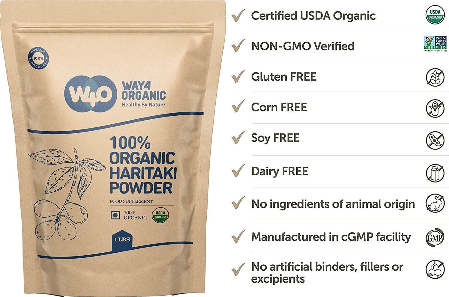 Organic Haritaki Powder 1lb (16 Ounces), Terminalia Chebula (Kadukkai) - Detoxification and Rejuvenation*, Good for Hair and to Reduce Dark Circles - Way4Organic