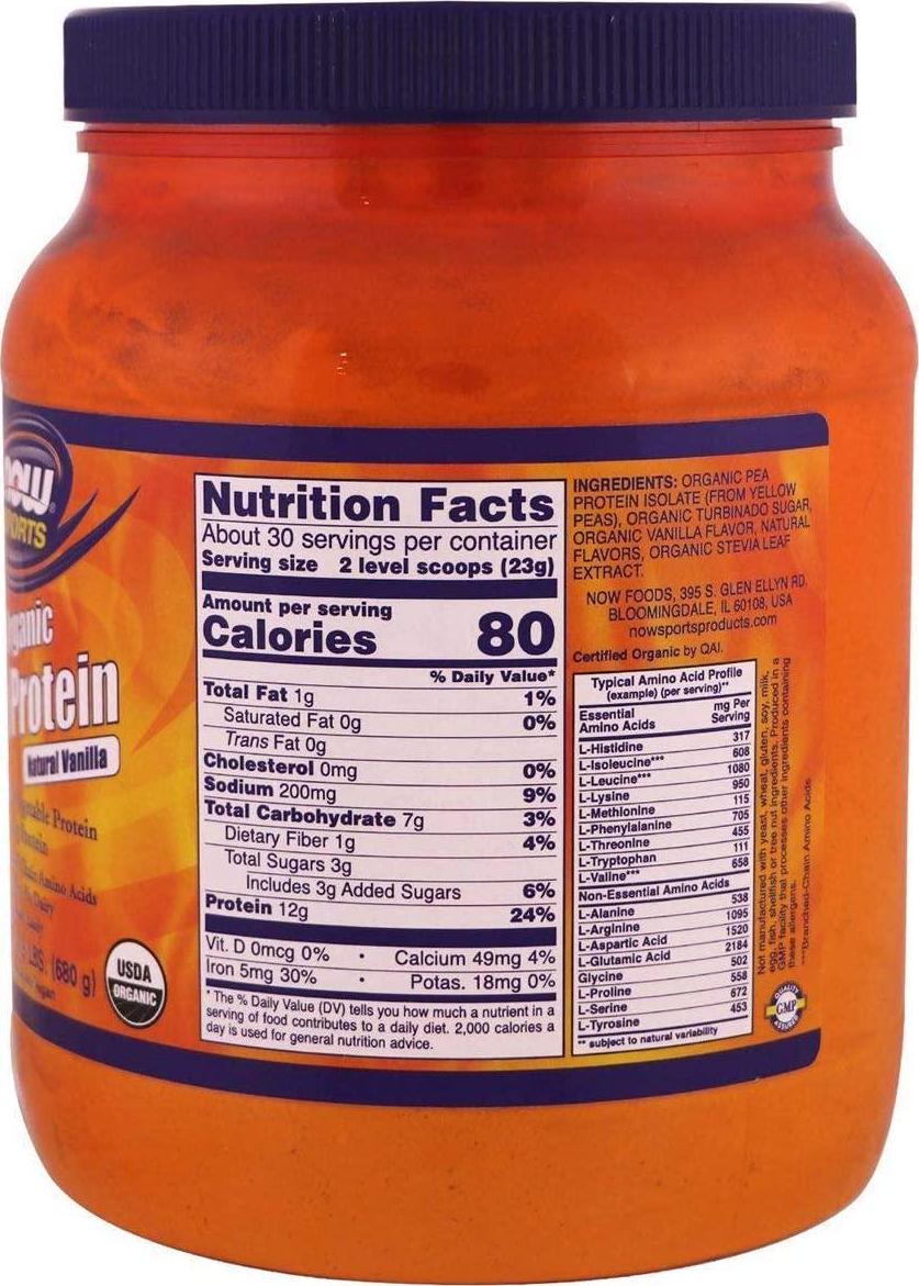 non-gmo, now foods, organic pea protein, protein powder, usa, vanilla powder