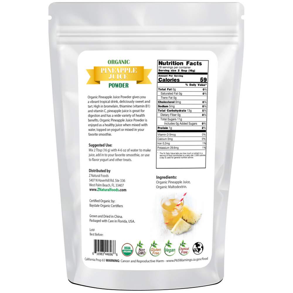 - DELICIOUS & NUTRITIOUS - Z Natural Foods pineapple juice powder tastes actual pineapple, not artificial. It is the ultimate all natural tropical water enhancer which makes drinking enough water each day easy. Staying hydrated helps with cardiovascular health, energy levels, brain function, weight loss, smooth skin and so much more.
