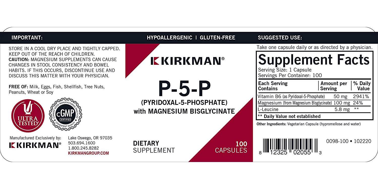 P-5-P (Pyridoxal 5-Phosphate, Vitamin B-6 Metabolite) with Magnesium Bisglycinate - Hypoallergenic