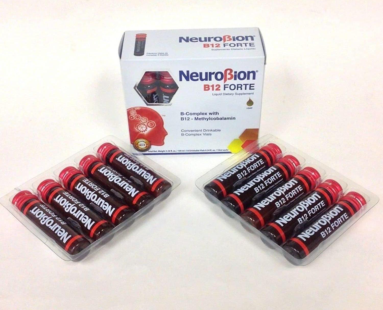 - Neurobion is a high potency formula multivitamin supplement that increases energy levels. Contains 2 boxes de 10 Drinkable Vials to achieve optimal treatment by taking 1 per day for 30 days of treatment. we add a bag of high-quality HOMESTUFF pills they are made from durable clear LDPE and are perfect for storing medications and traveling.