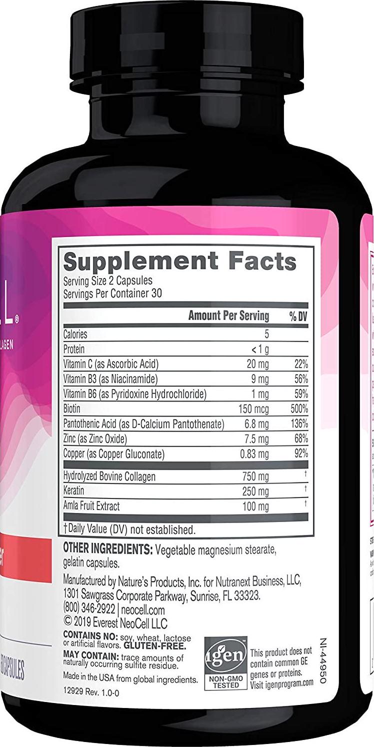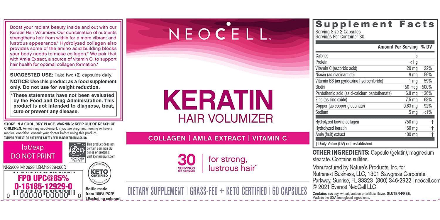 (Pack of 1) - NeoCell Corporation - Keratin Hair Volumizer, 60 tablets