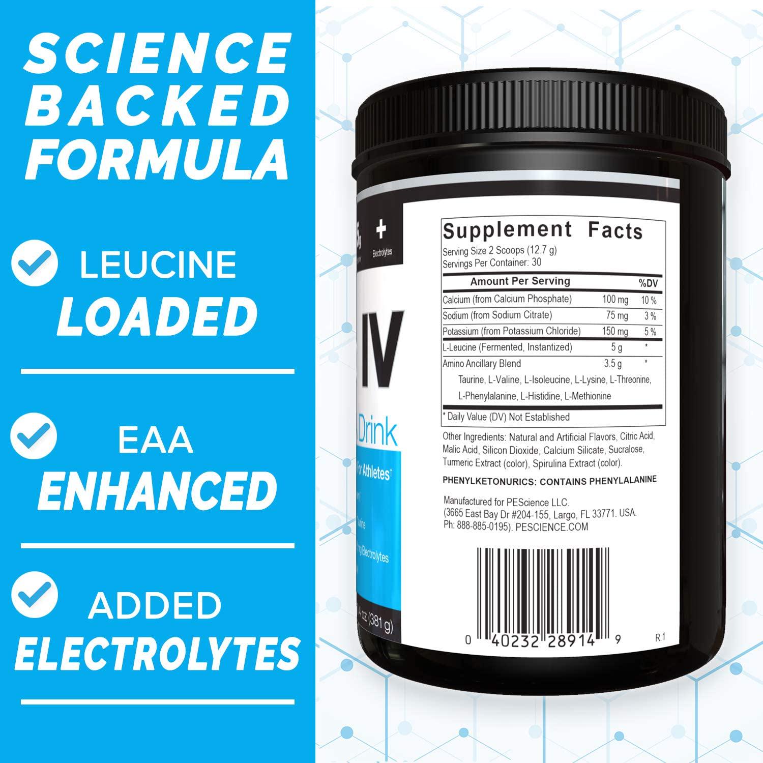 amino iv, bcaa, eaa, pescience, powder, strawberry lemonade, usa