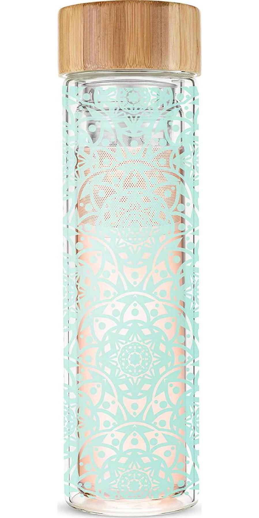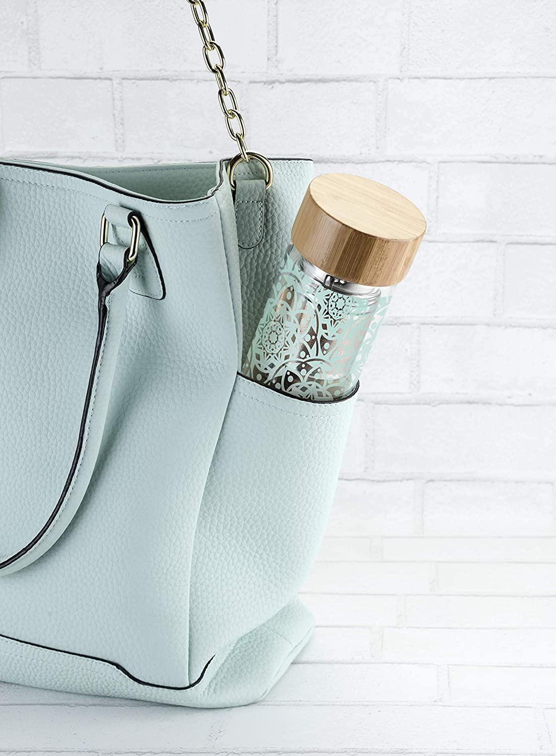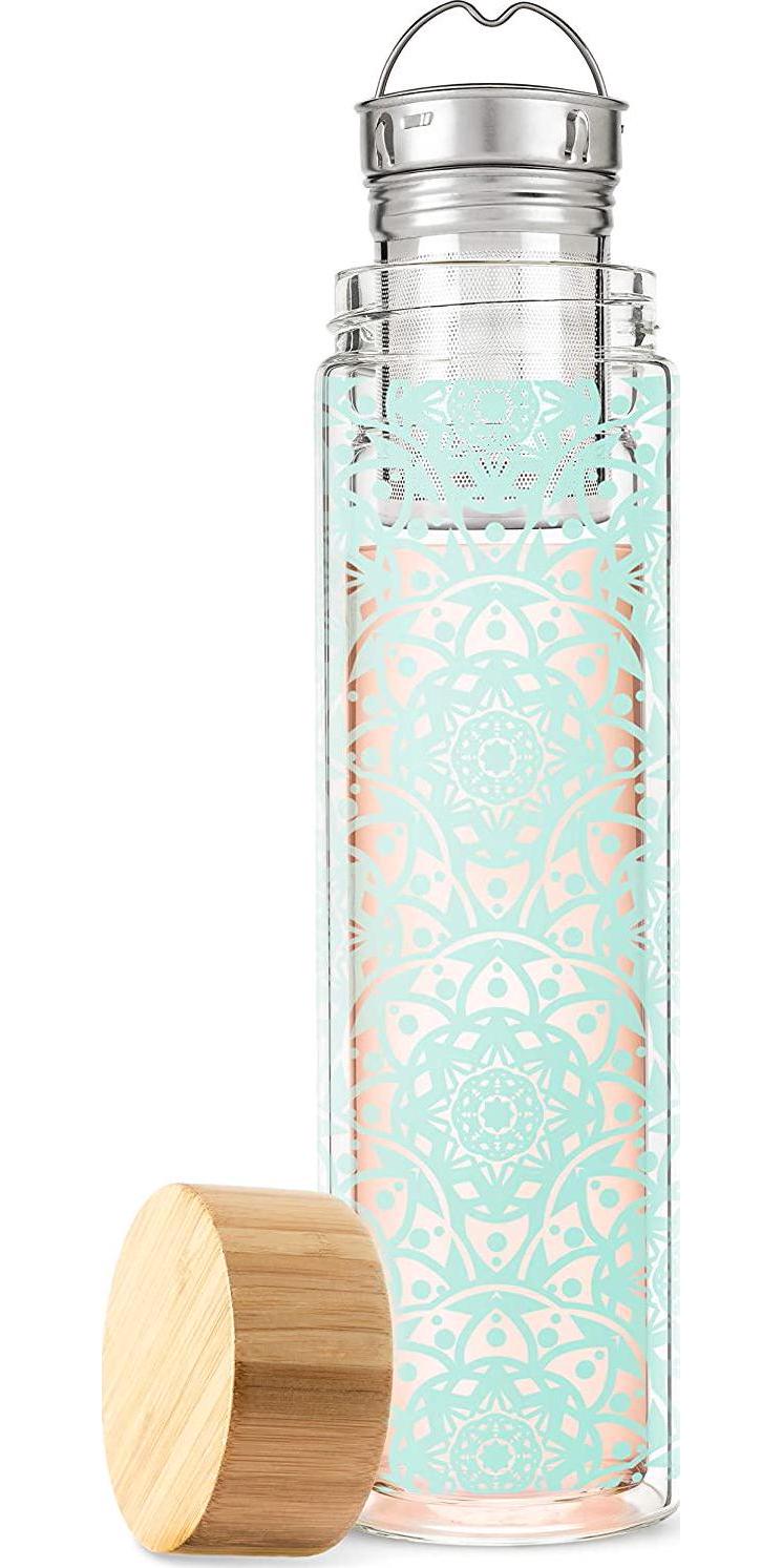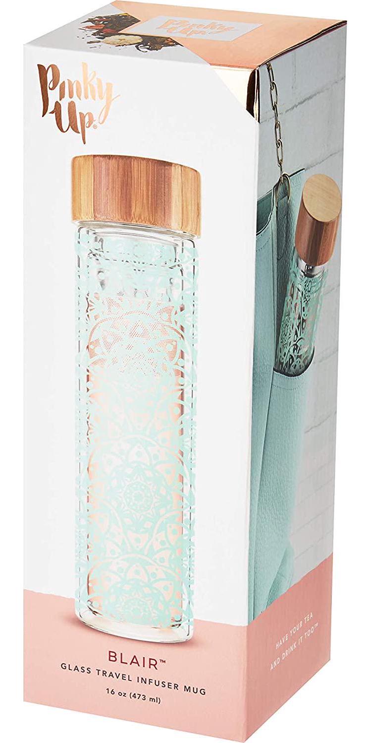 Pinky Up Blair Loose Leaf Tea Travel Infuser Mug, Double-Walled Glass and Stainless Steel with Bamboo Lid, 16 oz, Jamila Glass