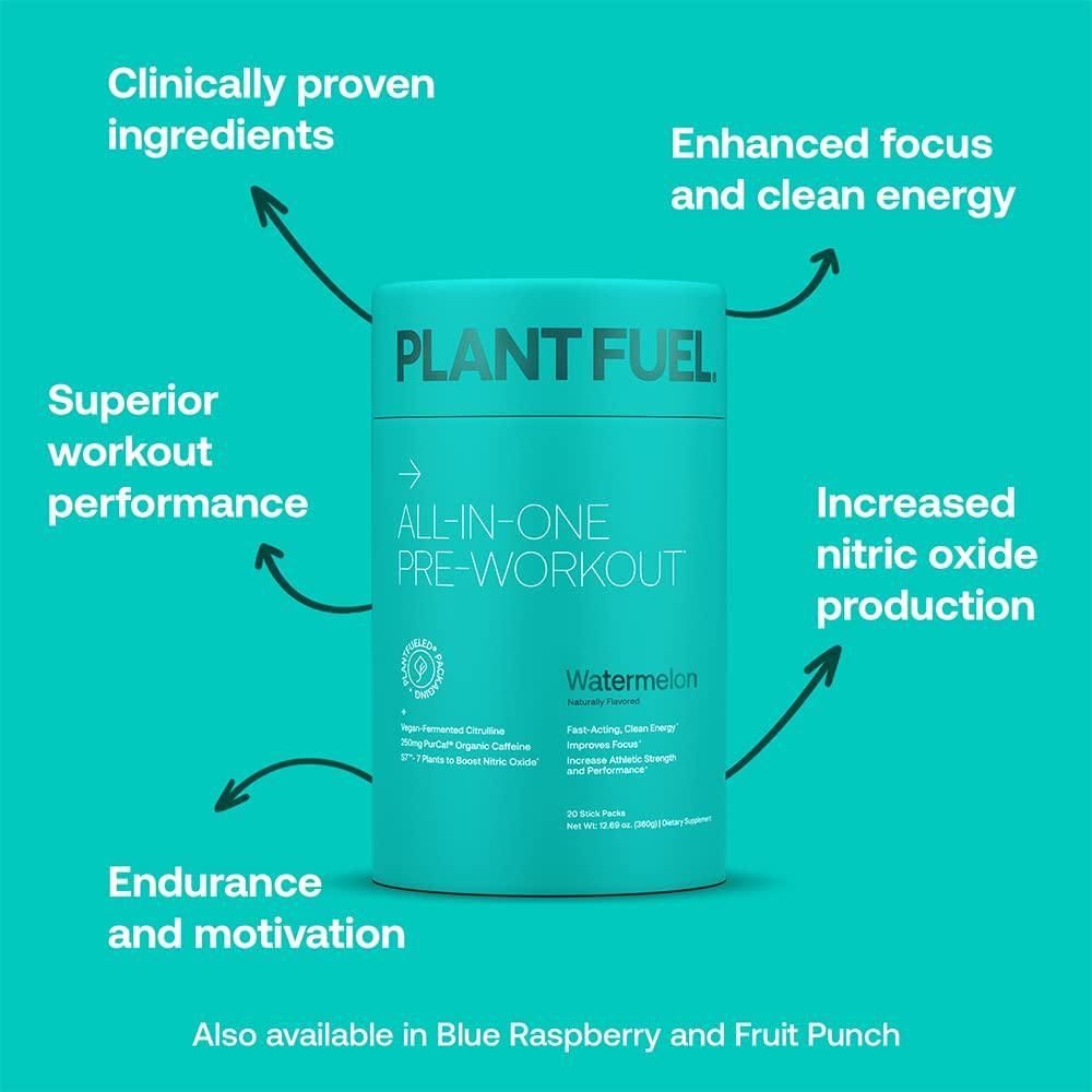 PLANTFUEL Vegan All-in-ONE PRE-Workout Fast-Acting, Clean Plant Based Energy, Featuring 3D Pump with PurCaf Organic Caffeine (20 Servings) Watermelon