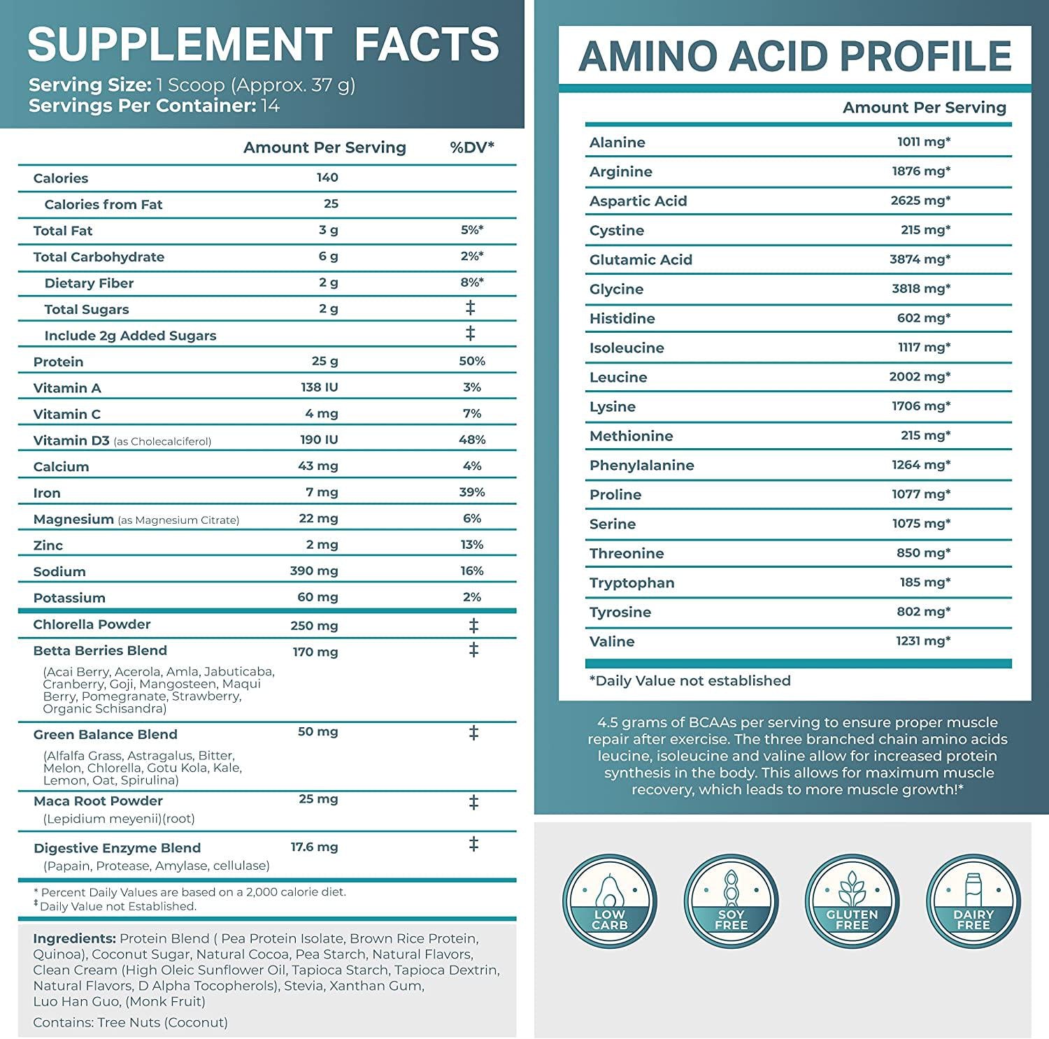 - BEYOND PROTEIN: 25g premium plant protein, 4.3g BCAAs and high leucine for muscle protein synthesis