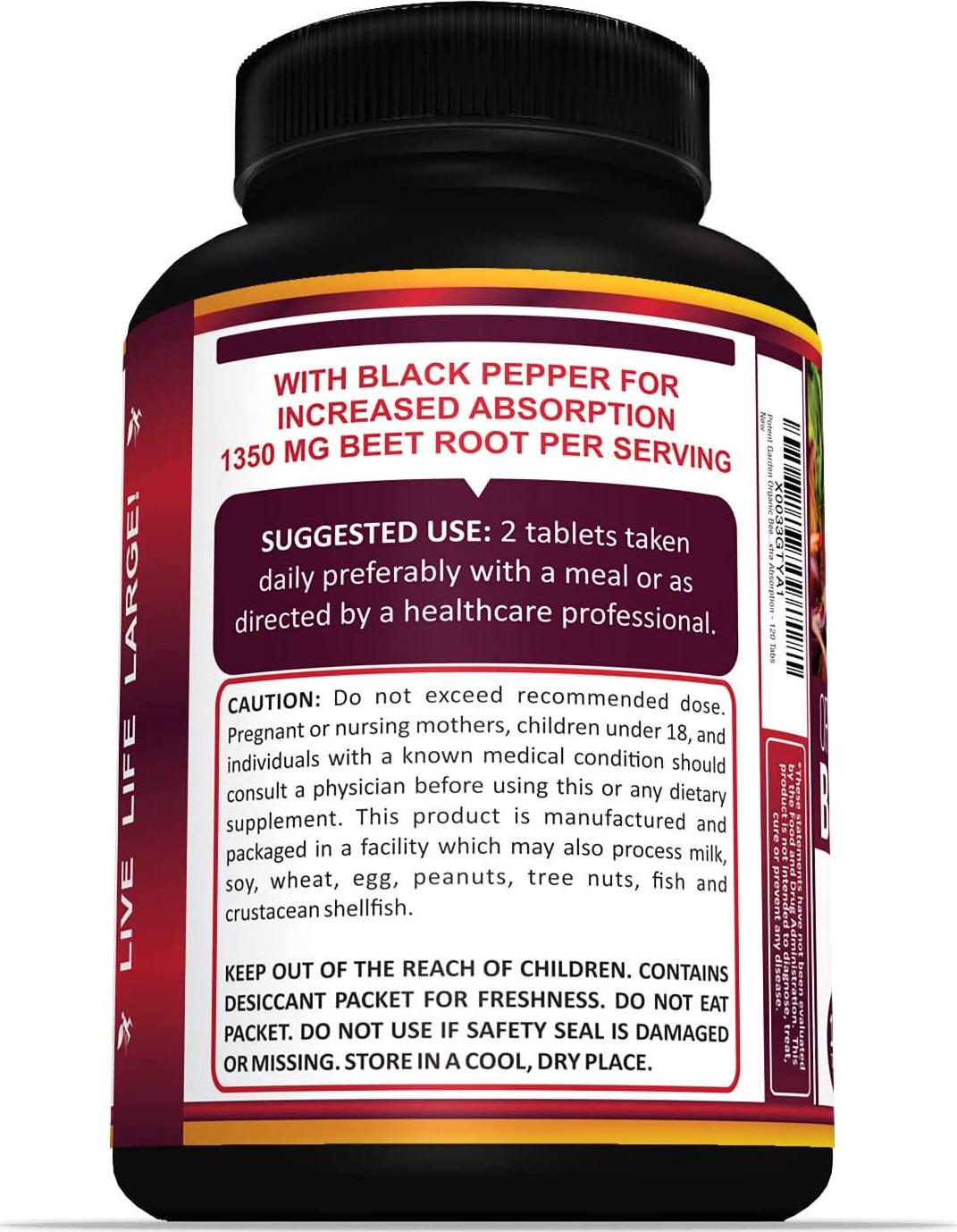 Potent Garden Beet Root USDA Organic 1350mg Beet Root Powder w/Black Pepper-Superfood Supplement Supports Nitric Oxide Production, Circulation, Athletic Performance-Vegan-120 Tablets