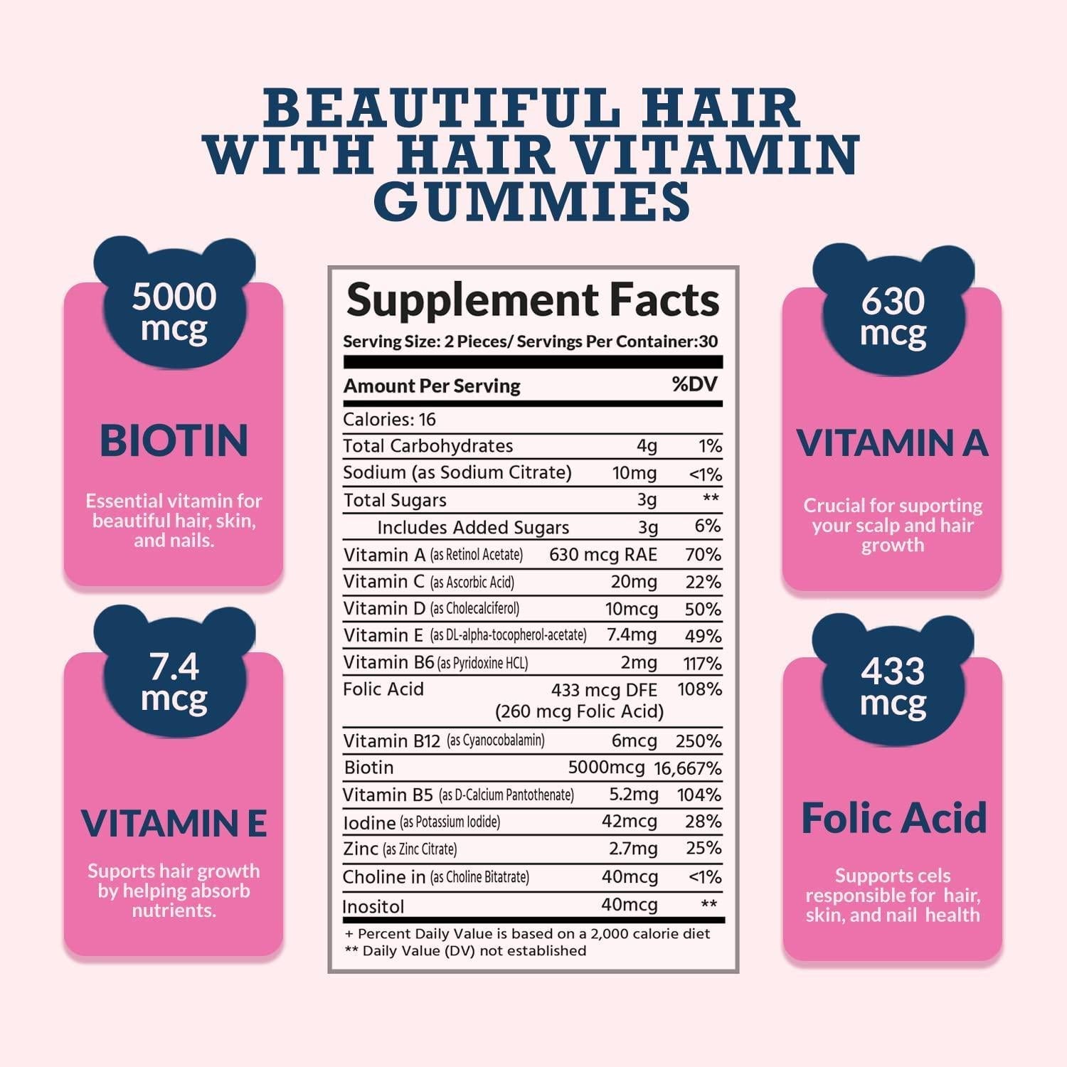 - Hair Gummy Vitamins: Hair Gummies provide nutrition to help support a foundation for longer, stronger, more beautiful looking hair; With these biotin gummies, you don't need to worry about swallowing capsules or dealing with negative side effects such as digestive upsets