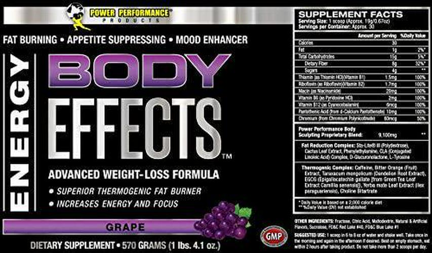 Power Performance Products Body Effects Pre Workout Supplement, Grape, 570 Grams