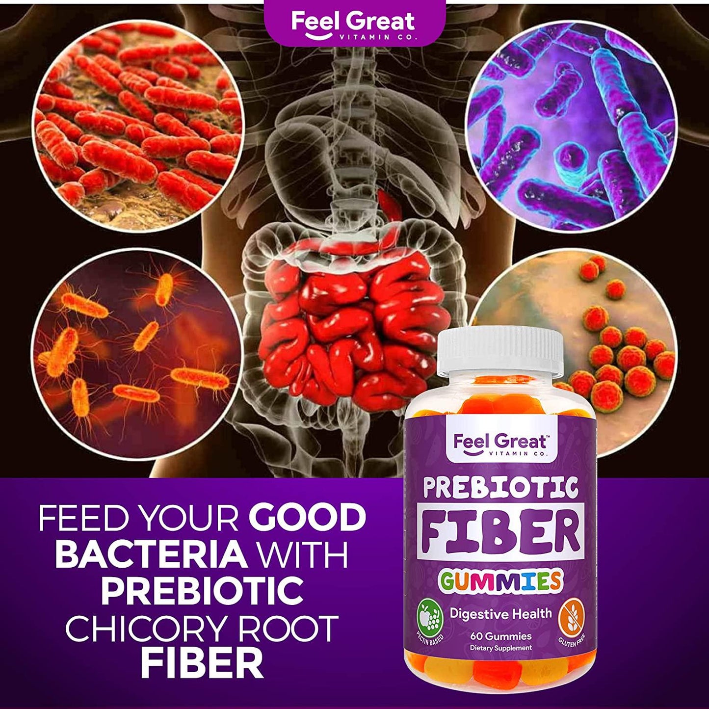 Prebiotic Fiber Gummies by Feel Great Vitamin Co (60 Gummies) | Helps Improve Digestive Health, Restore Natural Gut Flora, and Support Overall Health & Immunity* | Vegetarian & Vegan Friendly Chew