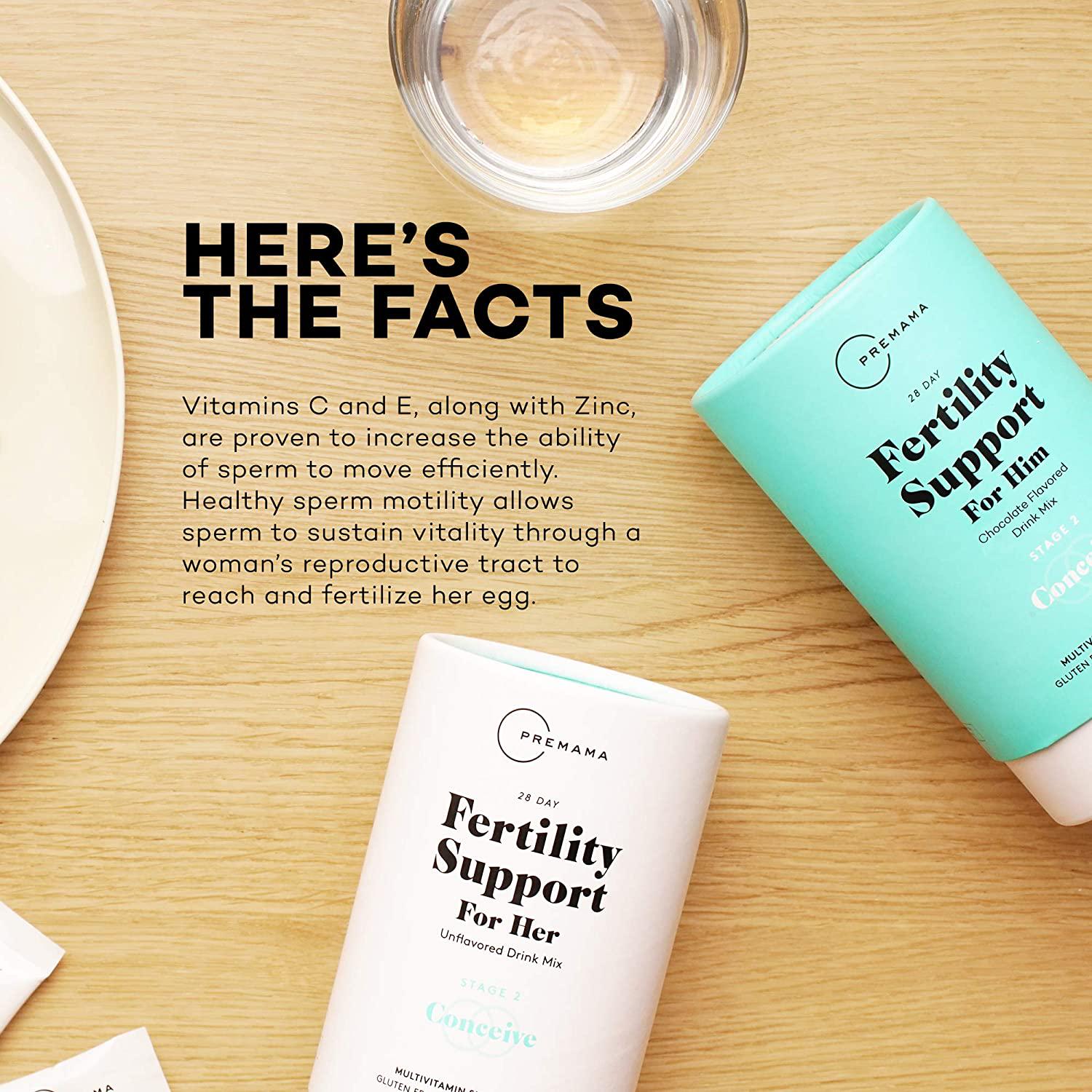 - NATURAL SUPPORT FOR FERTILITY: Fertility Support For Him contains Vitamins C and E, which, along with Zinc, are proven to increase the ability of sperm to move efficiently. Healthy sperm motility allows sperm to sustain vitality through a woman's reproductive tract to reach and fertilize her egg