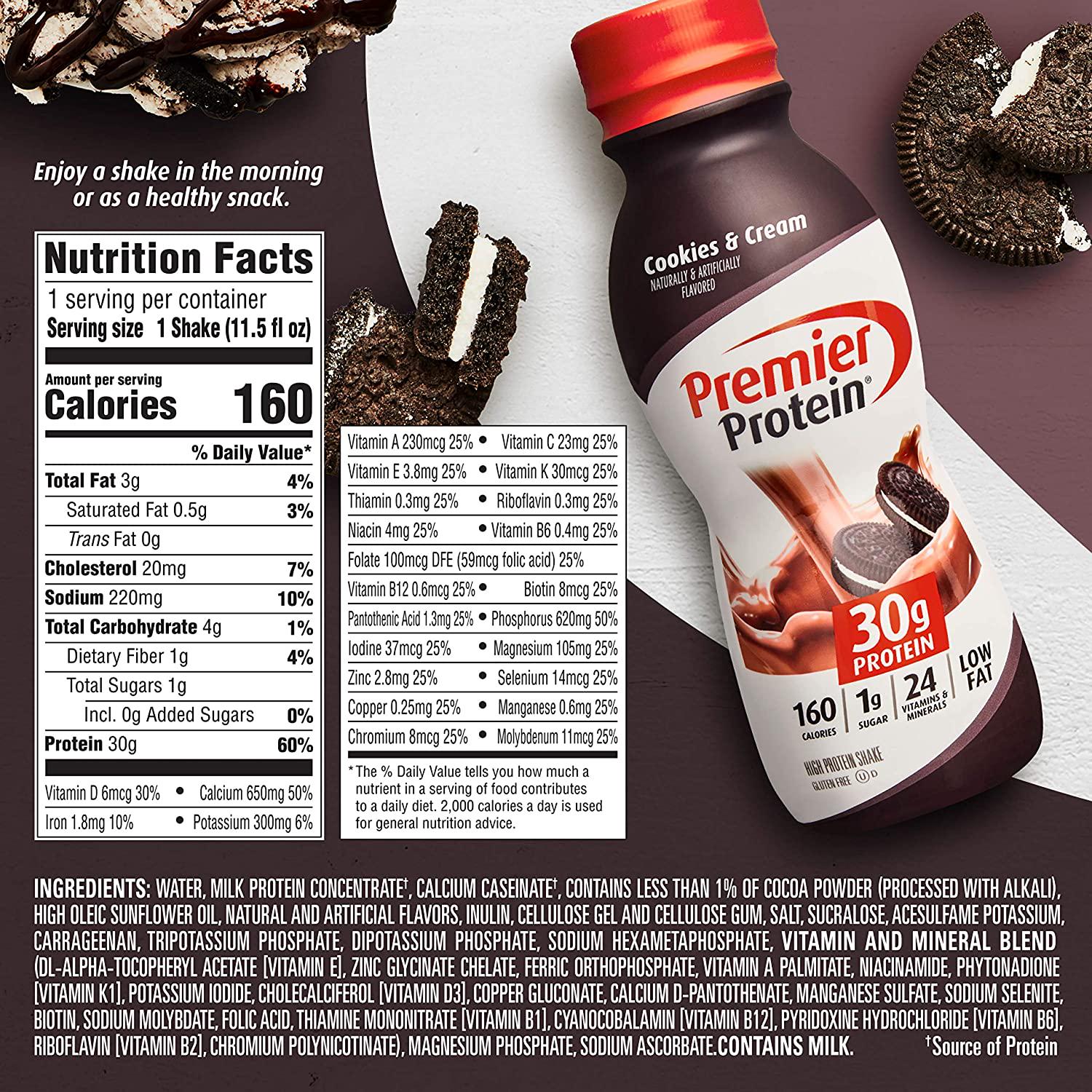 Premier Protein 30g Protein Shake, Cookies and Cream, 11.5 fl oz Shake, (12 count)