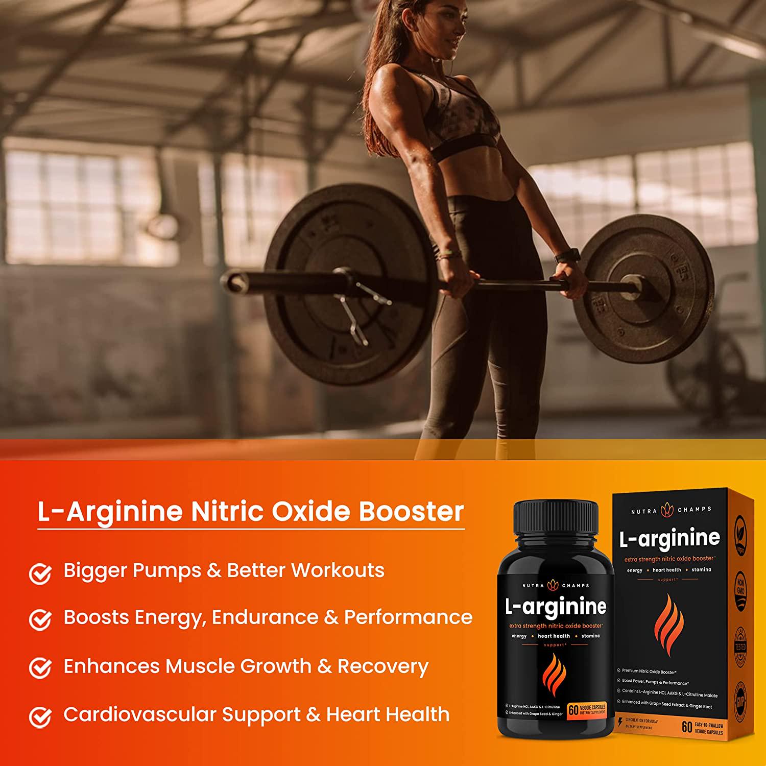 - Powerhouse Nitric Oxide Booster - NutraChamps L-Arginine is a scientifically designed premium nitric oxide stack that makes explosive exercise your new norm. Get ready to increase the intensity of your workout by supporting blood flow to your hard working muscles so that you can maximize your power, performance and pump without compromise.
