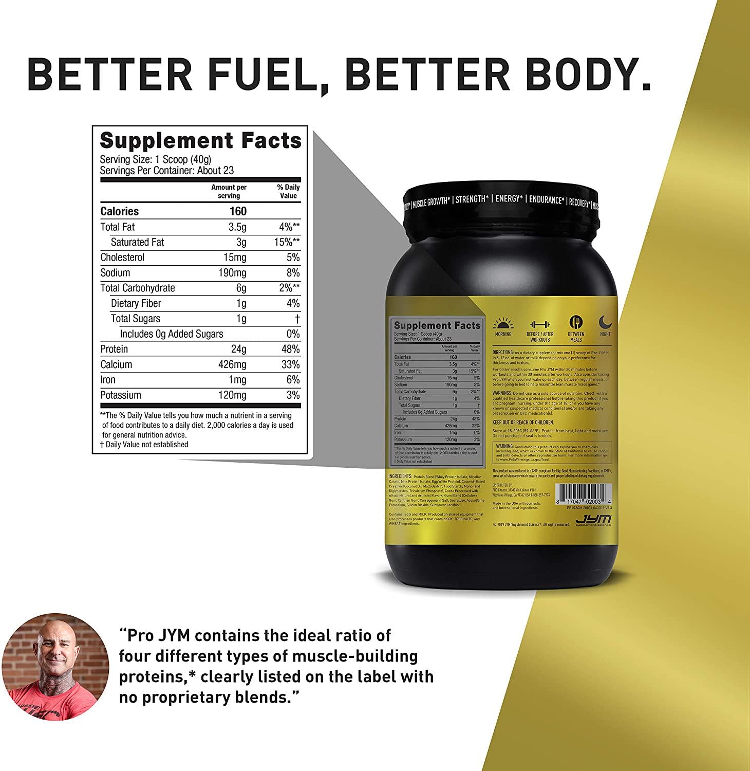 - GREAT TASTE - No other protein powder surpasses the great taste, texture, and nutrition of Pro JYM. Simply mix with water, milk, almond milk or add other ingredients for a delicious high protein shake or smoothie. It also comes in chocolate and vanilla.