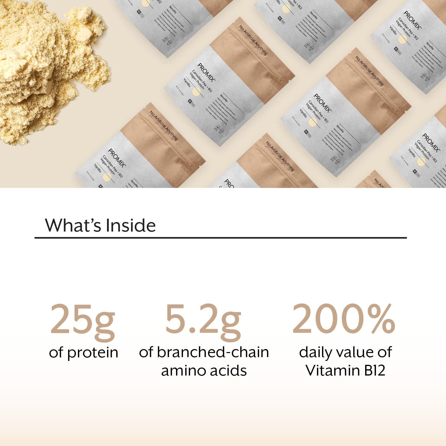 Promix Plant-Based Vegan Protein Powder, Vanilla - 2lb - Pea Protein and Vitamin B-12 - Post Workout Fitness and Nutrition Shakes, Smoothies and Cooking Recipes - Gluten-Free and NSF Certified