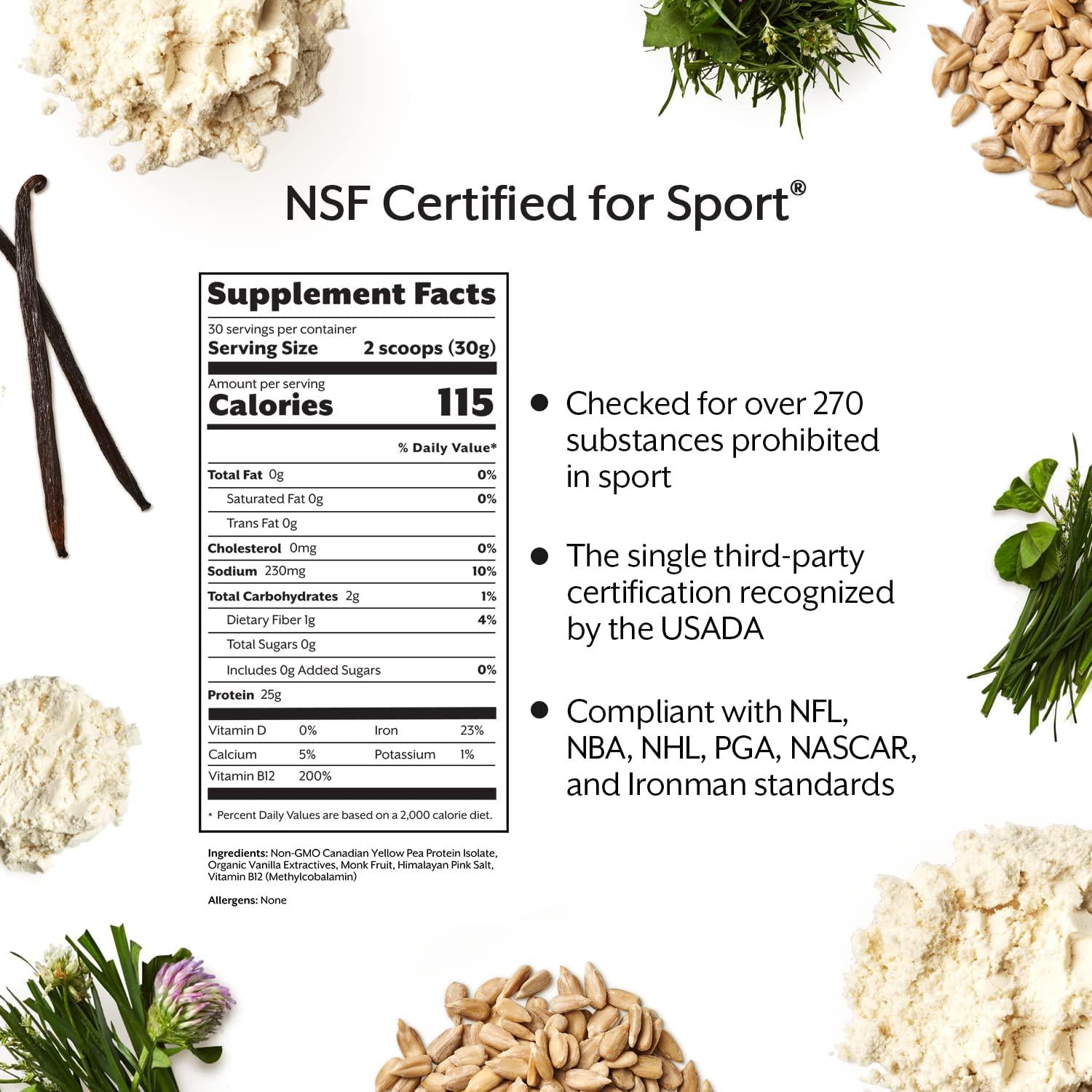 - Support Recovery and Build Muscle: Promix Vegan Protein Powder is a highly bioavailable vegan protein isolate made from Canadian yellow peas. This light- and smooth-tasting powder has a classic vanilla flavor and is lightly sweetened with monk fruit. Easy to digest and blend. Grown and processed in North America. This product is NSF Certified for Sport. Vanilla flavor. 30 servings per container, 2 scoops per serving.