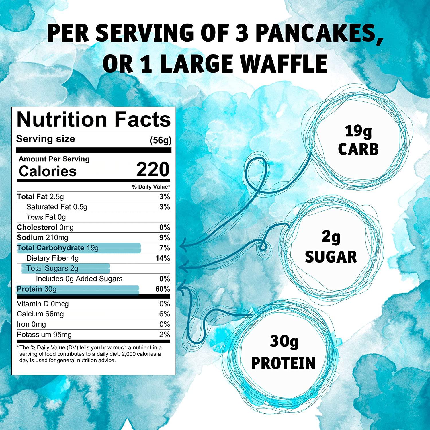 - OPTIMAL MACRONUTRIENT FORMULA: Fuel your body for success with a protein packed pancake and waffle mix with 30g of Protein, 15g of Net Carbs, and 2.5g of Fat. Our Original Pancake and Waffle Mix uses Whey Protein to get you the macros you want and deserve.