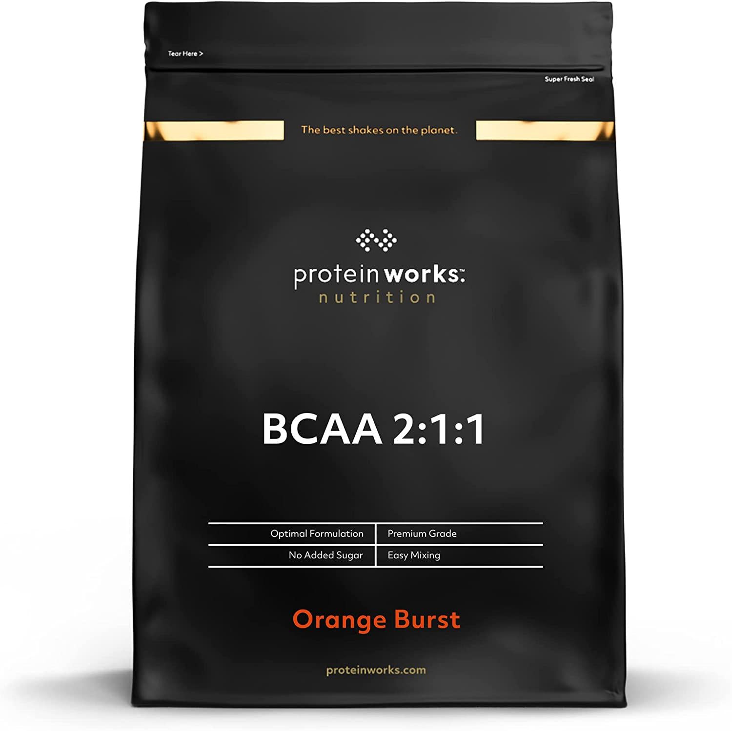 Protein Works | Instantised BCAA Powder | Branched Chain Amino Acid Supplement | 2:1:1 Ratio | Aids Recovery and Muscle Building | Orange Burst | 500 g