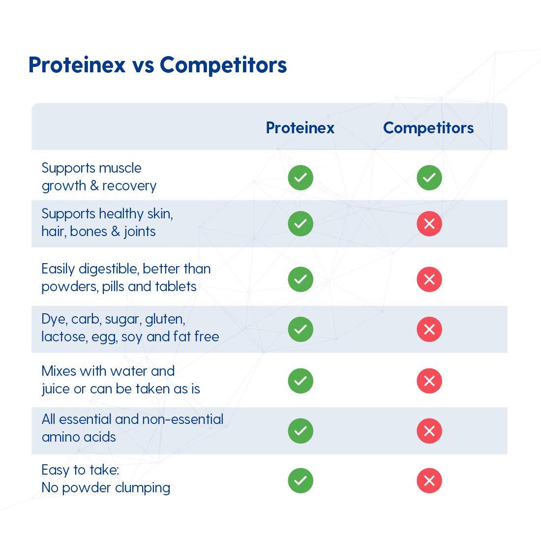 - LEVEL UP PERFORMANCE: Help your body to recover from intense training or a hard day spent on the job with Proteinex liquid hydrolyzed protein post workout recovery drink. Consuming protein provides essential building blocks to damaged muscles allowing them to rebuild after each training session. It's your easy way to get your target protein with minimal consumption.