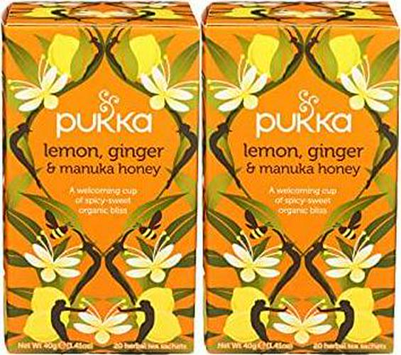 Pukka Herbs Organic Lemon, Ginger and Manuka Honey Herbal Tea, 20 itea bags (pack of 2 boxes)