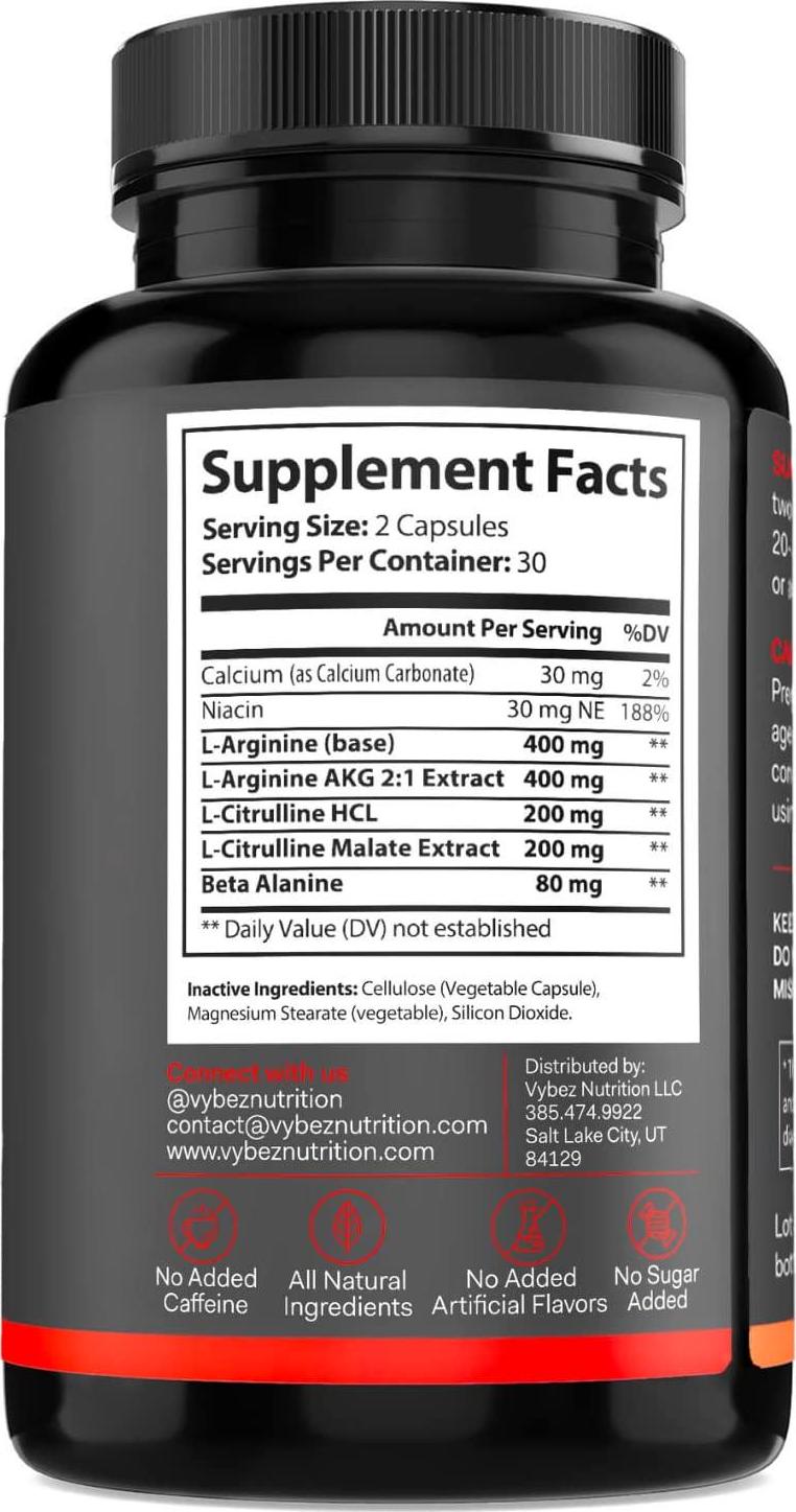 60 capsules, beta alanine, l-arginine, l-citrulline, pre-workout supplement, stimulant free