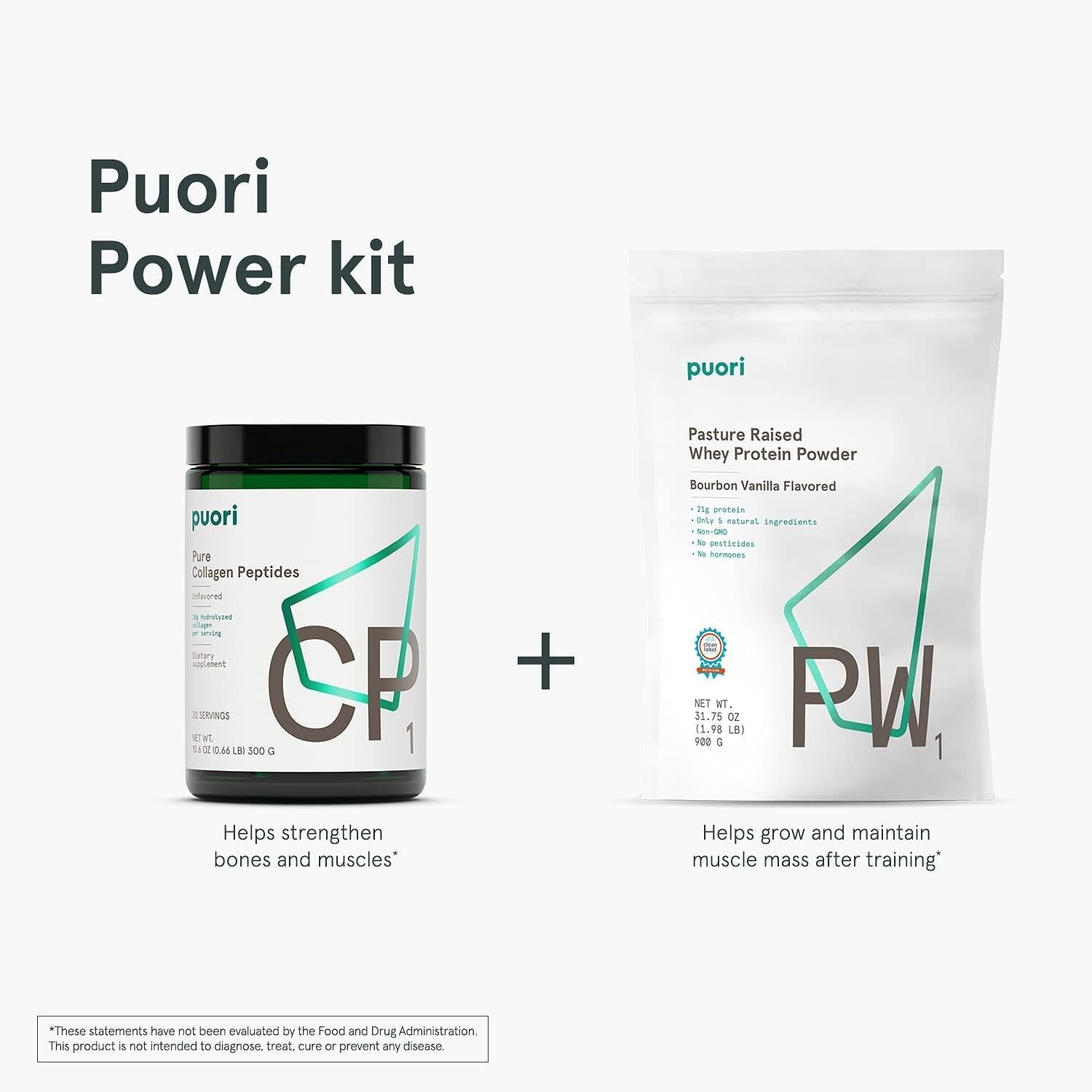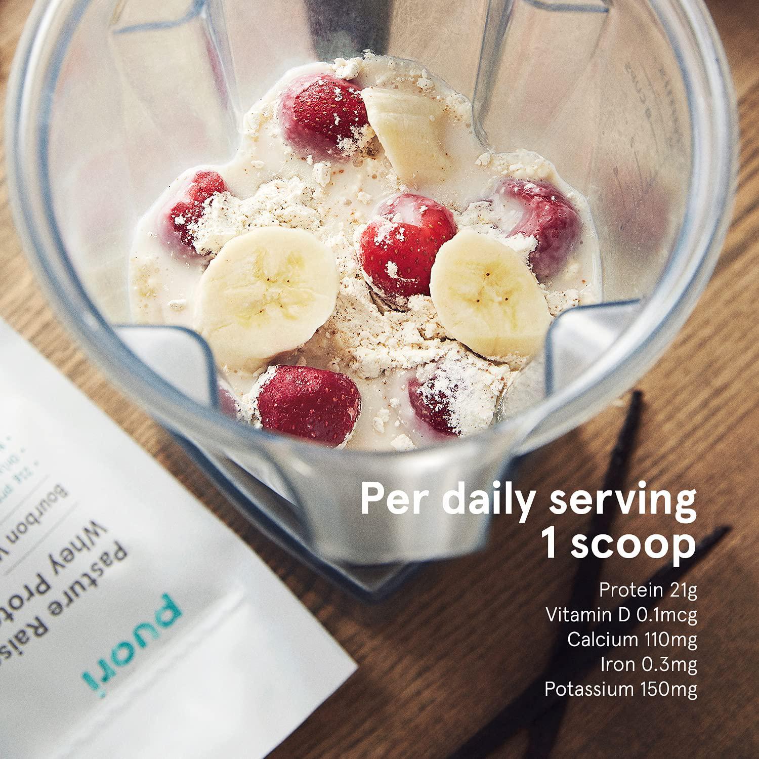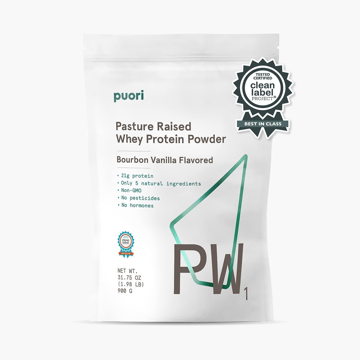 Puori Whey Protein Powder - Bourbon Vanilla - PW1 Pasture Raised Non-GMO - 100% Natural and Pure for Muscle Growth - 21g Protein 1.98lbs