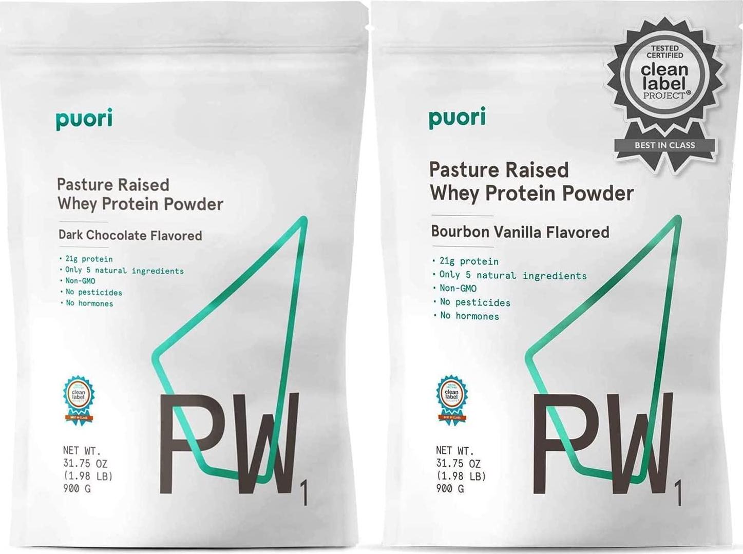 Puori Whey Protein Powder Bundle - Dark Chocolate and Bourbon Vanilla - PW1 Pasture-Raised Grass-Fed Non-GMO - 100% Natural and Pure for Muscle Growth - 21g Protein