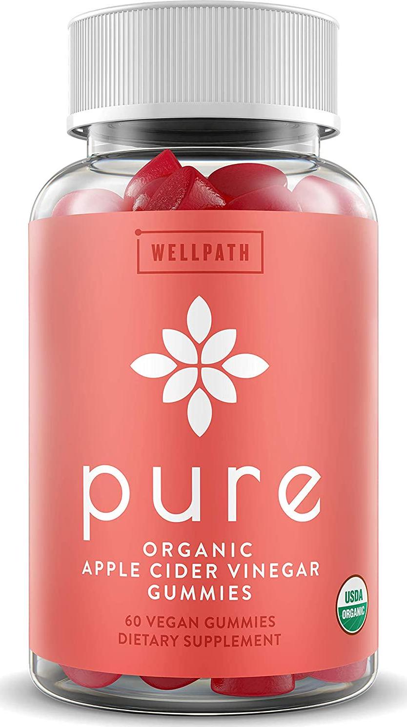 - Organic Apple Cider Vinegar Gummies: Each bottle of Pure has 60 delicious USDA Organic apple cider vinegar gummies with "the mother. Each serving has acetic acid that may help cleanse your body and support digestion.