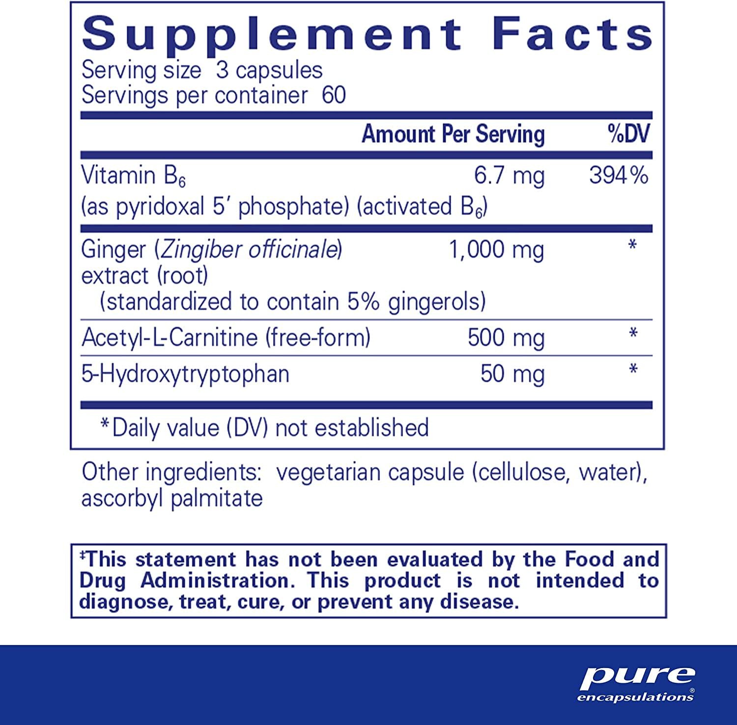 - Serotonin Support: 5-HTP and ginger support healthy serotonin functions in the brain, in turn supporting proper gastric emptying, intestinal transit, healthy visceral sensation and upper GI comfort.*