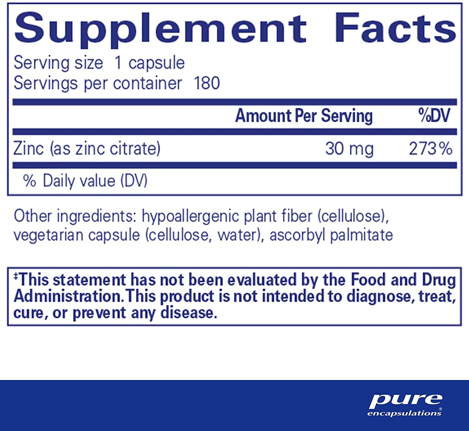 180 capsules, immune system support, pure encapsulations, reproductive health, tissue development, usa, zinc citrate