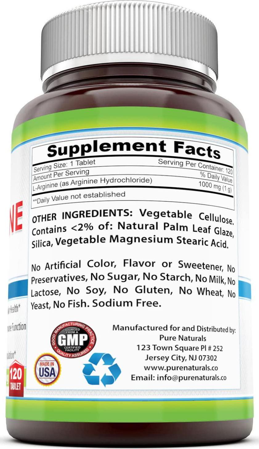 capsules, cardiovascular health, l-arginine 1000mg, natural ingredients, pure naturals, usa
