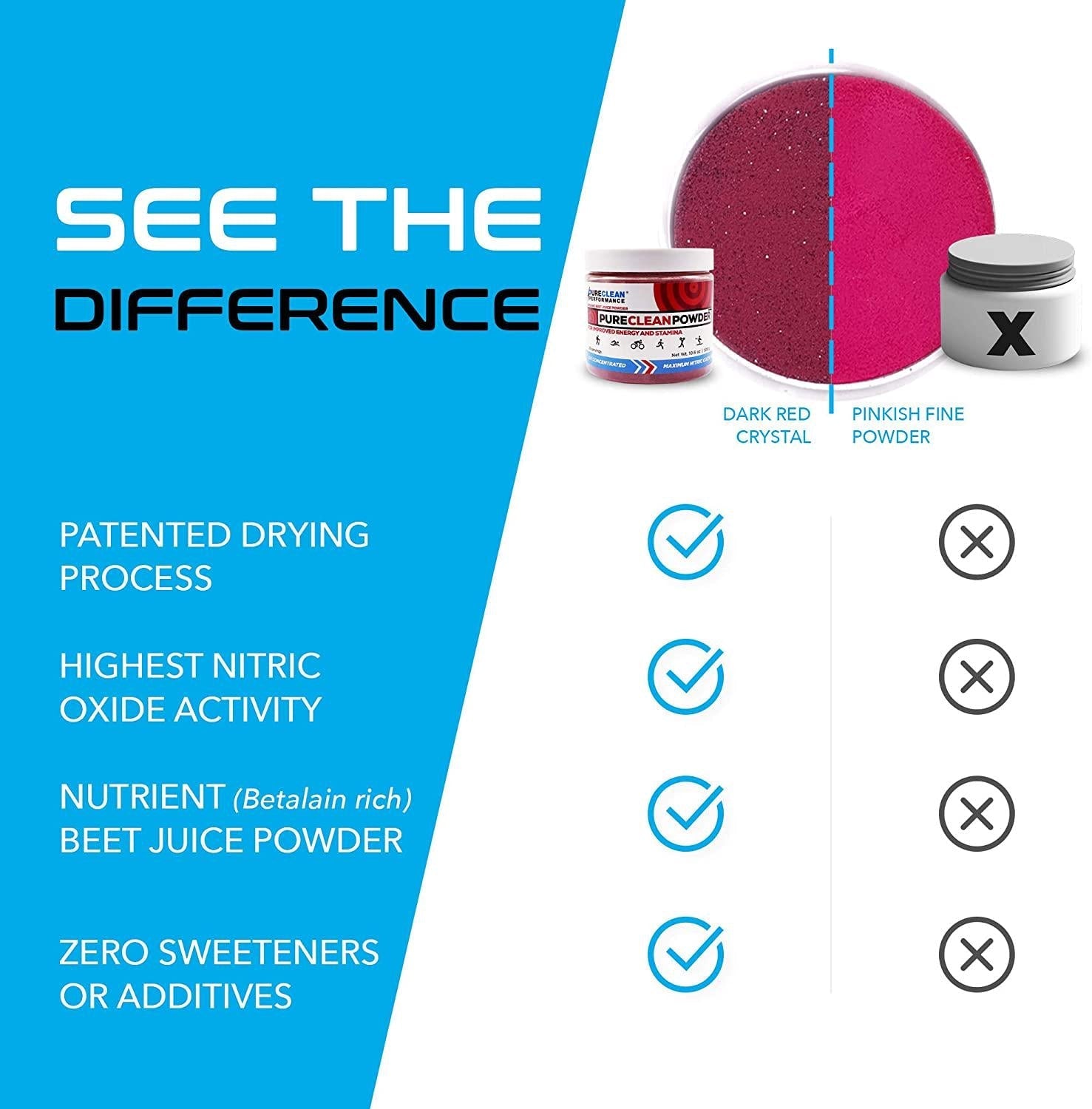 - TRUSTED BRAND This honest-to-goodness product is made from a select crop of organic beets that have been cultivated from beet juice beet, to contain more than twice the nitric-oxide-enhancing nutrients found in ordinary beet it beets juice, red beets. As an added value best bonus, PureClean Powder is a grown beneficial, processed and packaged right here in the U.S.A!