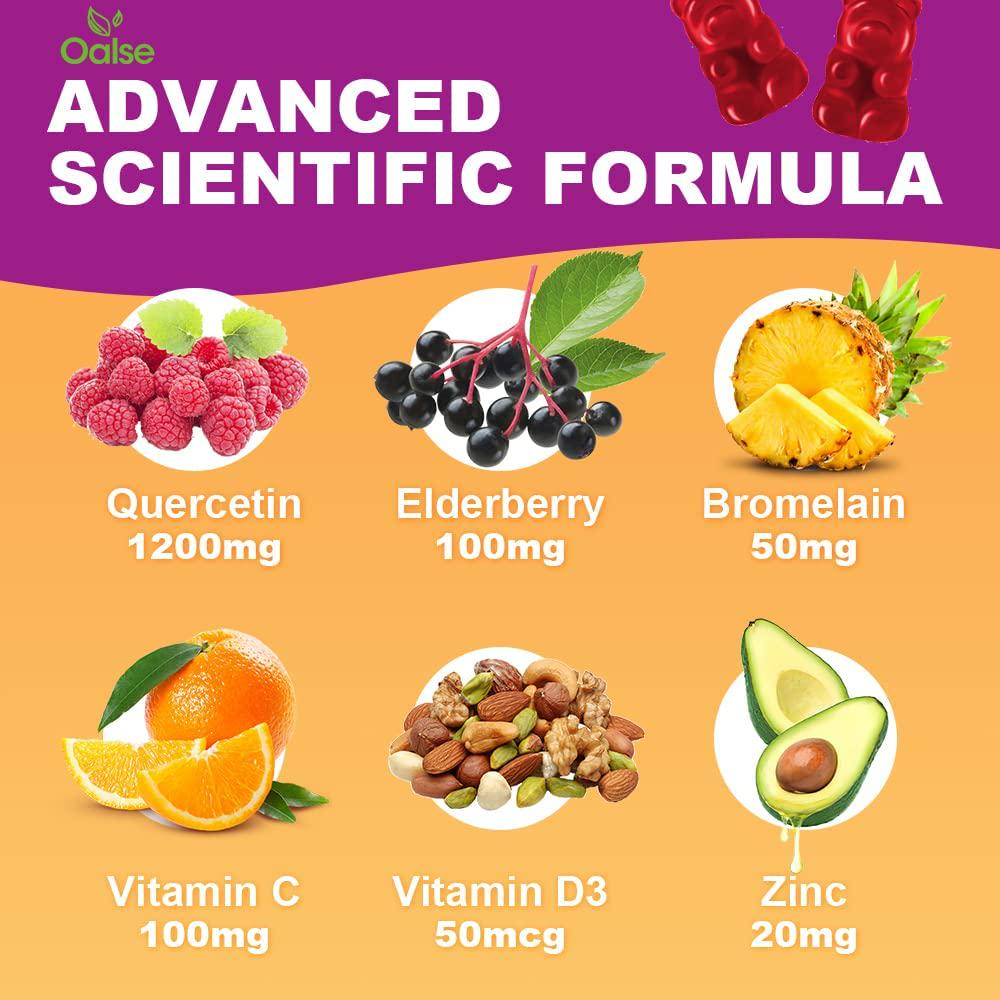 Quercetin Gummies by Oalse - Quercetin with Bromelain Vitamin C and Zinc & Elderberry + Vitamin D3 - 5 in 1 Immune Support - Zinc Quercetin 750 mg for Kids and Adults (120 Count ( Pack of 2))