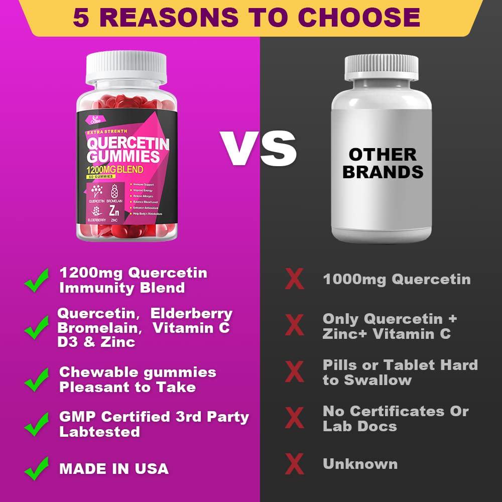 - Multiple Benefits Quercetin gummies help support immune defense, antioxidants, cardiovascular and heart, skin health, allergy relief, inflammation reduction, and lung function. Add Quercetin Immune Gummies dietary supplement to your table selection and help improve your healthy lifestyle!