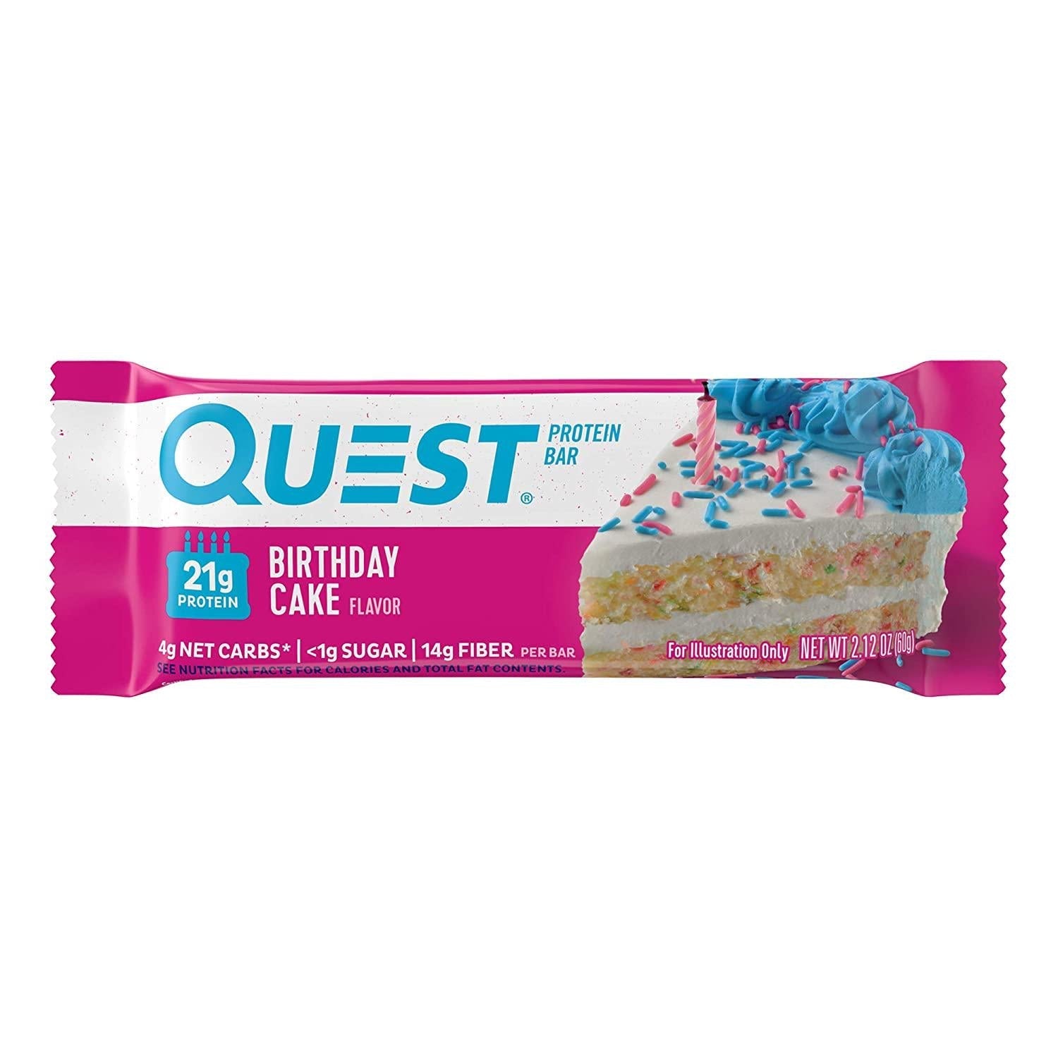 21g protein, birthday cake, keto-friendly, no added sugar, protein bar, quest nutrition, usa