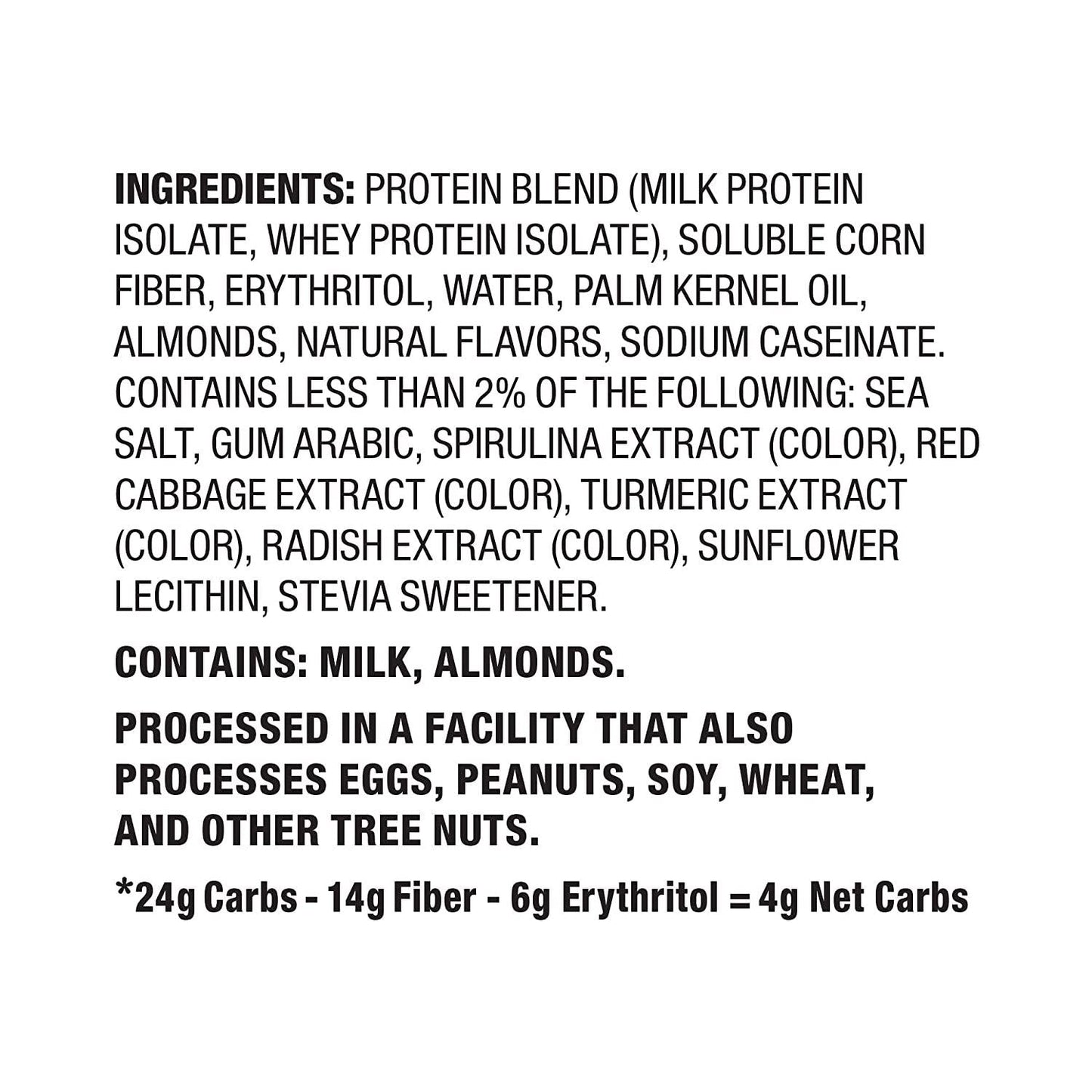 - 21g Protein, 4g Net Carbs, 1g Sugar, 14g Fiber per bar
