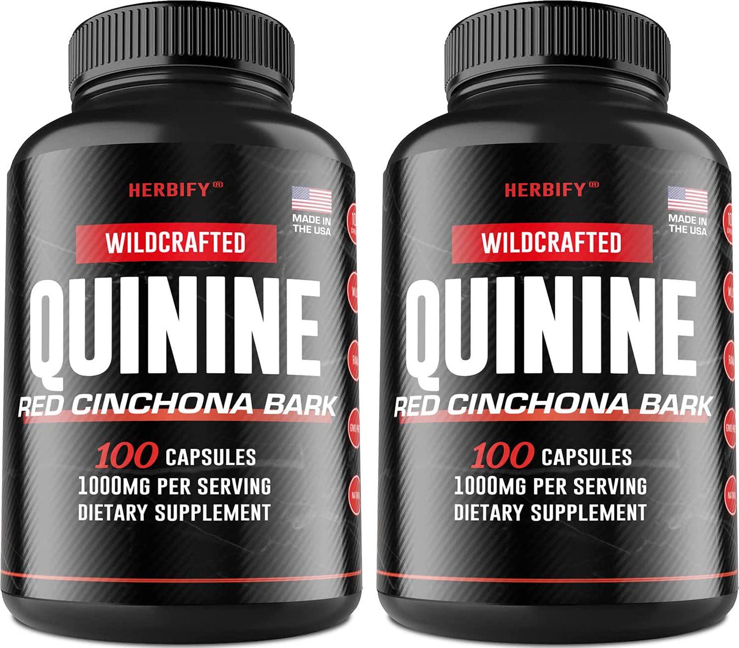 Quinine Pills 1000mg, Red Cinchona Bark (Cinchona succirubra) and Peruvian Bark (Cinchona officinalis) Powerful Combination, Wild Harvested Herbal Supplement, 100 Capsules (200)
