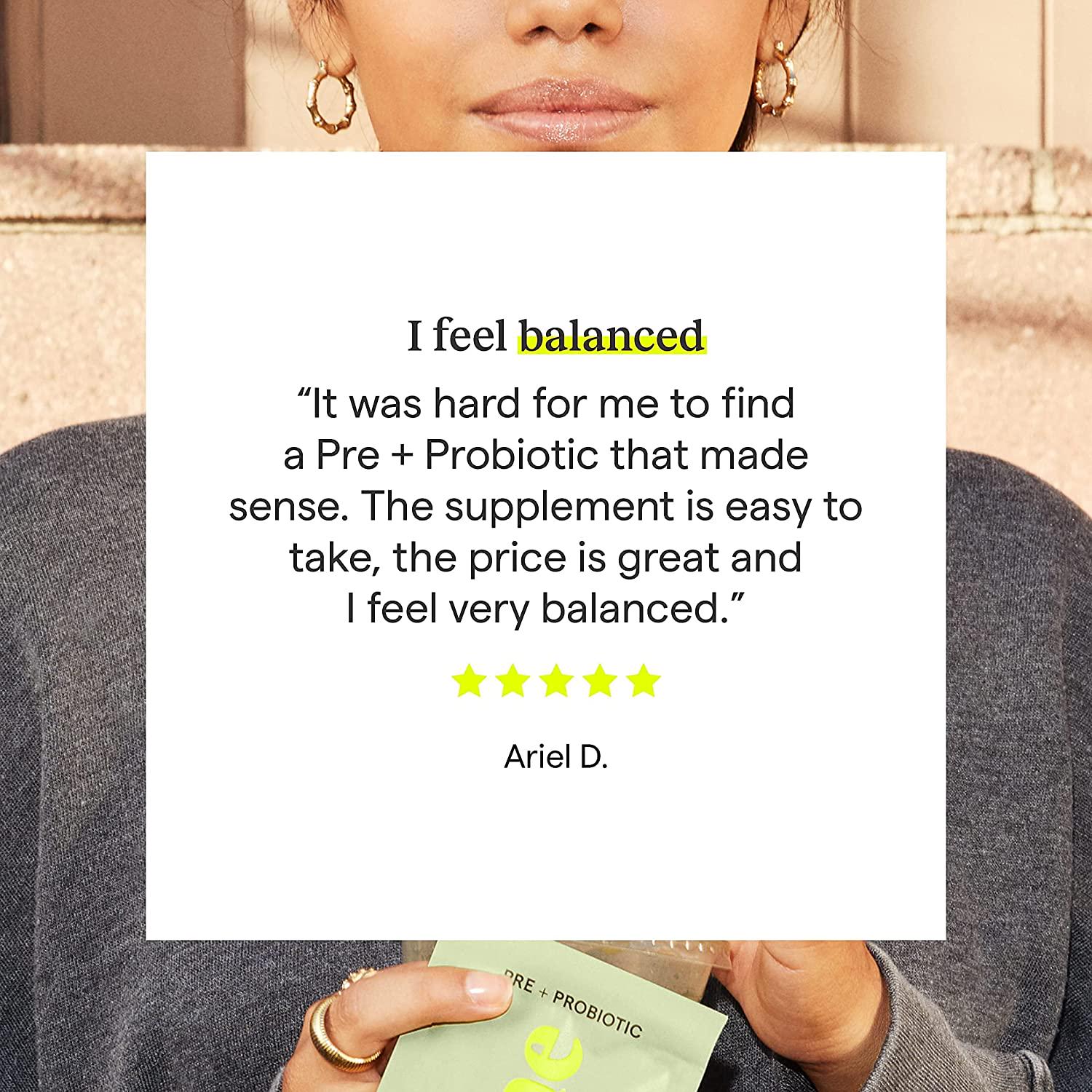 Pre+Probiotic: I feel less bloated, I have more energy and my skin is clearer. -Camille