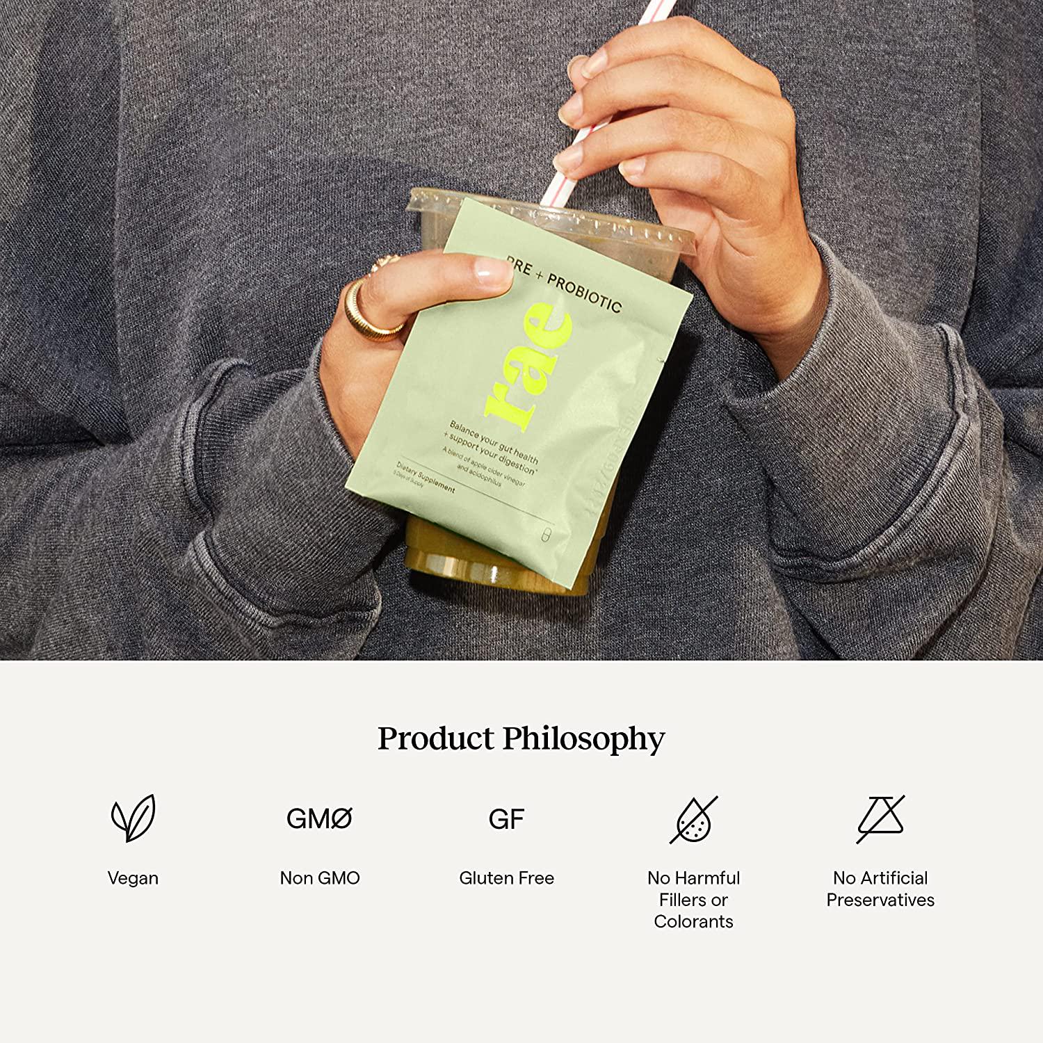 Rae Pre + Probiotic for Women Sachet - Women s Probiotic and Prebiotic Supplement for Gut Health with Apple Cider Vinegar and Lactobacillus Acidophilus - Shelf Stable, Vegan, Non GMO and Gluten Free