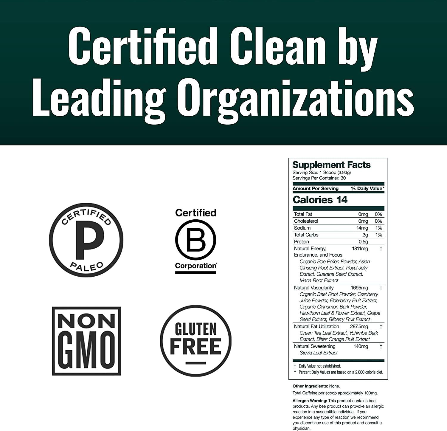 best energy booster, certified paleo, natural pre workout powder, non gmo, premium herbs, superfoods, usa